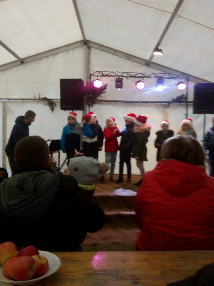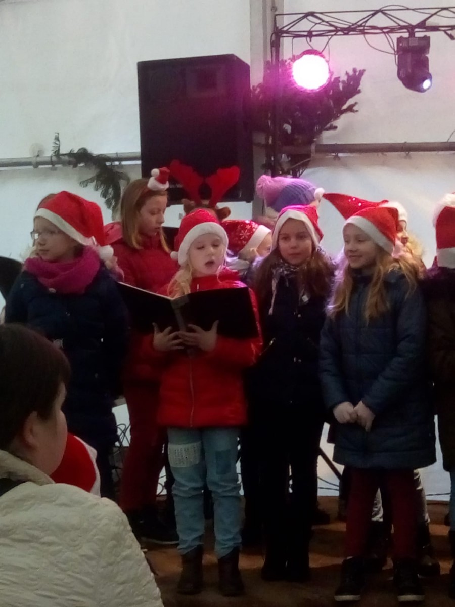 1 grudnia 2019 roku na plebani parafialny Caritas po raz kolejny zorganizował Kiermasz Adwentowy. Jak co roku nasi uczniowie uświetnili to spotkanie śpiewem i grą na instrumentach. Wystąpiło ponad 30 uczniów, którzy zaprezentowali tradycyjne kolędy, pastorałki i piosenki świąteczne. Na fletach kolędy wykonali Paulina z klasy VII a oraz uczniowie z klasy VI a: Paulina, Zuzka i Mateusz. Wszyscy wykonawcy otrzymali gromkie brawa i słodki upominek.