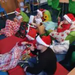przekąski, jak w prawdziwym kinie. Atmosfera była mikołajkowa. Wszystkim bardzo podobał się pomysł z kinem. Zobaczcie sami…