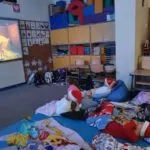 Uczniowie klasy 1b podczas mikołajek zamienili swoją klasę w KINO. Wspólnie oglądali bajkę o czerwononosym reniferze i śpiewali piosenki. Oczywiście były