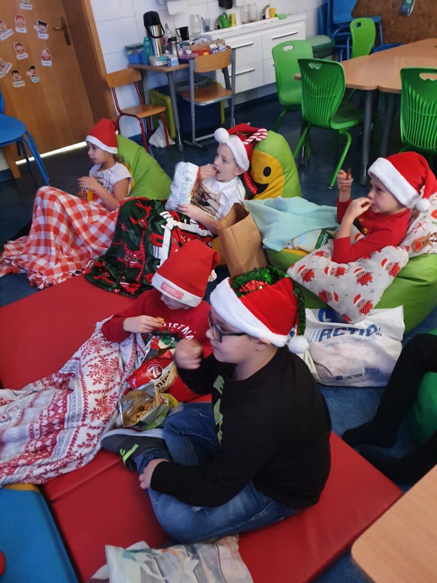 przekąski, jak w prawdziwym kinie. Atmosfera była mikołajkowa. Wszystkim bardzo podobał się pomysł z kinem. Zobaczcie sami…