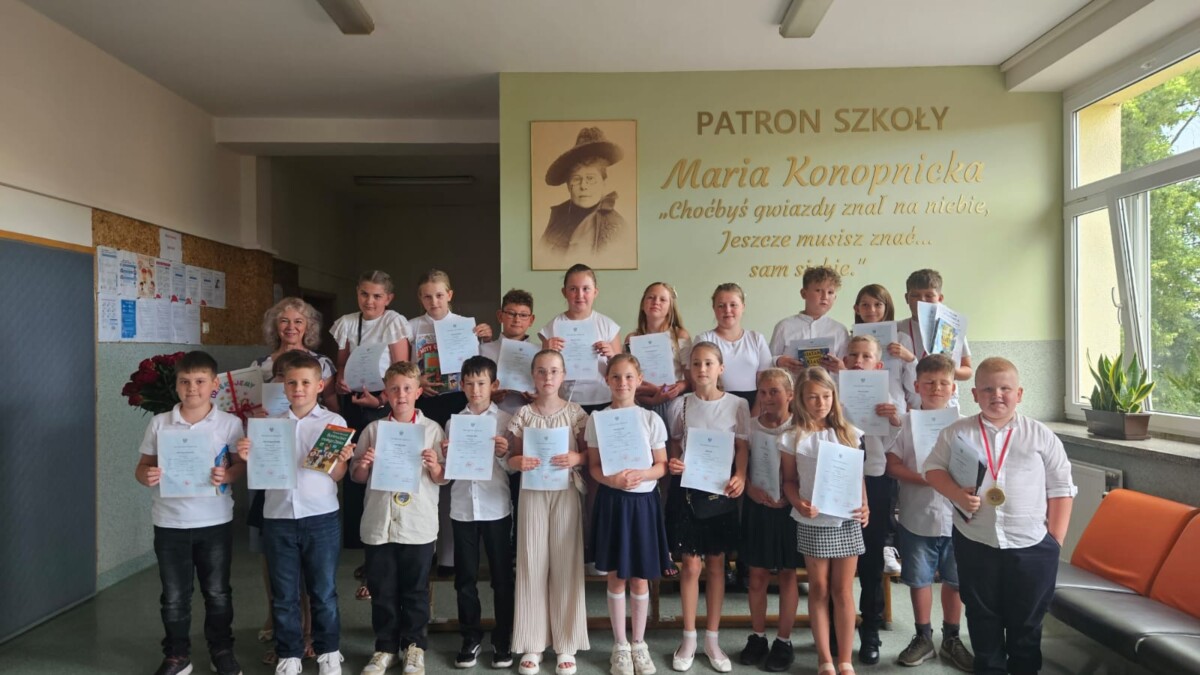 Końcówka nie była łatwa. Na koniec I edukacyjnego uczniowie klasy III pisali pierwszy w życiu ogólnopolski sprawdzian wiadomości, tzw. Trzecioteścik. Egzaminowanie trwało dwa dni, ponieważ test obejmował sprawdzian wiedzy z części polonistyczno-społeczno-przyrodniczej oraz z części matematycznej. Wszyscy uczniowie zdali egzamin z powodzeniem. Średnia wyników z części polonistyczno-społeczno-przyrodniczej wyniosła 72 %, a z części matematycznej 63 %. Uhonorowaniem ciężkiej pracy w klasach I – III jest promocja wszystkich uczniów do klasy IV. Gratuluję i życzę uczniom powodzenia i wielu sukcesów na całym II etapie edukacyjnym.
