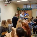 W piątek , 18.11.2022 r. w naszej szkole gościliśmy Wójta Gminy Dobrzeń Wielki- p. Piotra Szlapę, który spotkał się z młodzieżą klas ósmych. Przybliżył uczniom bardzo ważne treści dotyczące roli samorządu terytorialnego, działań podejmowanych przez władzę uchwałodawczą i wykonawczą. Przypomniał postacie Radnych z terenu naszej gminy. Na koniec zachęcał młodzież do działań na rzecz swojego środowiska lokalnego. Uczniowie wyrazili swoje zadowolenie i wdzięczność za spotkanie nagradzając Wójta gromkimi brawami i zapraszając na kolejne spotkania. P. dyrektor Dorota Lewandowska-Jaroń podziękowała w imieniu Społeczności Szkolnej wręczają c pamiątkowy dyplom a Pan Wójt obdarował wszystkich uczestników spotkania miłymi niespodziankami.