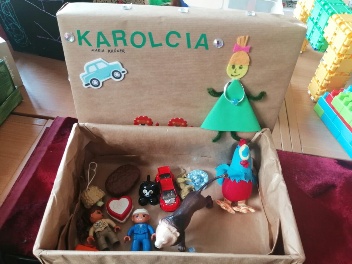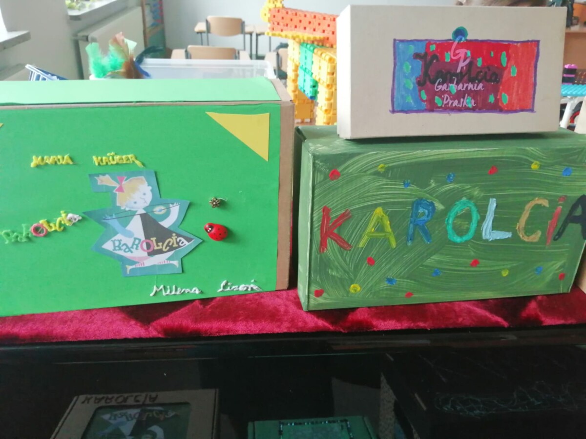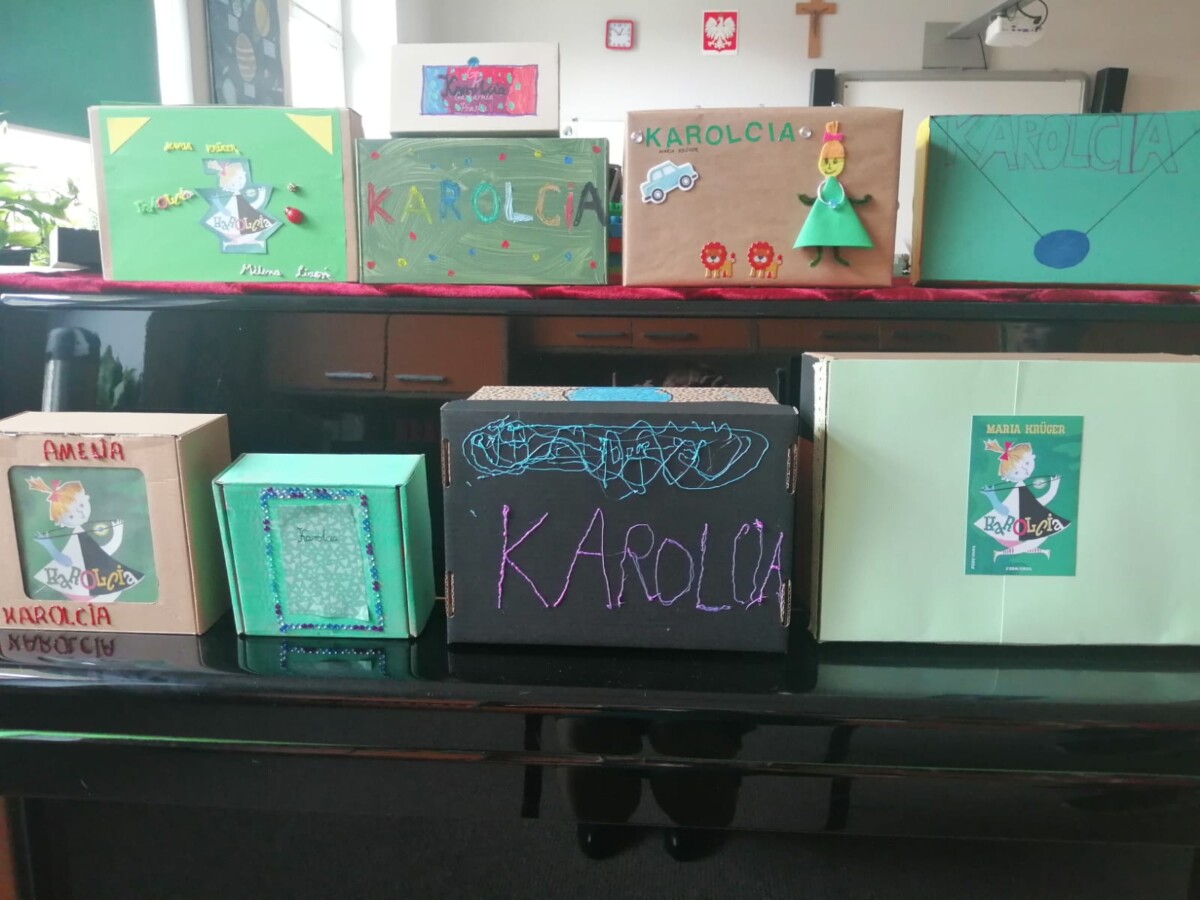 Klasa 3a zakończyła pracę z lekturą szkolną, pt. Karolcia autorstwa Marii Kruger. Książka opowiada o przygodach Karolci, która znalazła niebieski koralik. Miał on magiczną moc spełniania życzeń. Lektura okazała się bardzo ciekawa. Uczniowie oprócz zwykłych zadań, które wykonywali na lekcji takich jak: plan wydarzeń, opis, opowiadania, rebusy i zagadki, przygotowali również pudełka z przedmiotami, które miały związek z przeczytaną książką. Zostały one pięknie ozdobione, w środku znalazły się różne maskotki, figurki zrobione z klocków Lego, z plasteliny, wycięte z papieru, samochodziki, ciasteczka, a nawet płatki owsiane, których tak bardzo nie lubiła Karolcia. Takie podsumowanie lektury, wszystkim spodobało się. Każdy sposób jest dobry, by zachęcać dzieci do sięgania po książki i rozbudzać w nich zainteresowania czytelnicze. Książka to skarbnica wiedzy, warto o tym pamiętać!