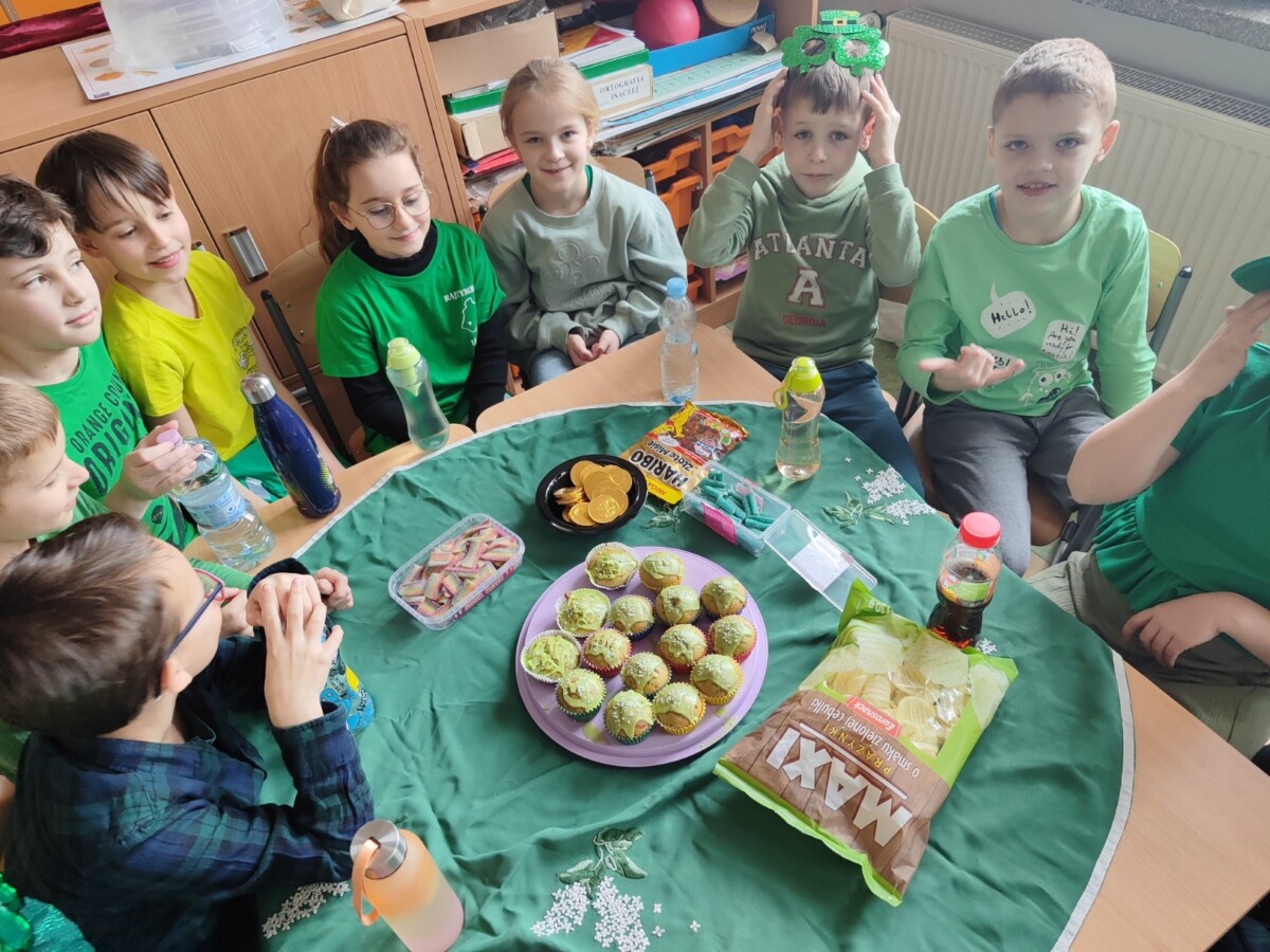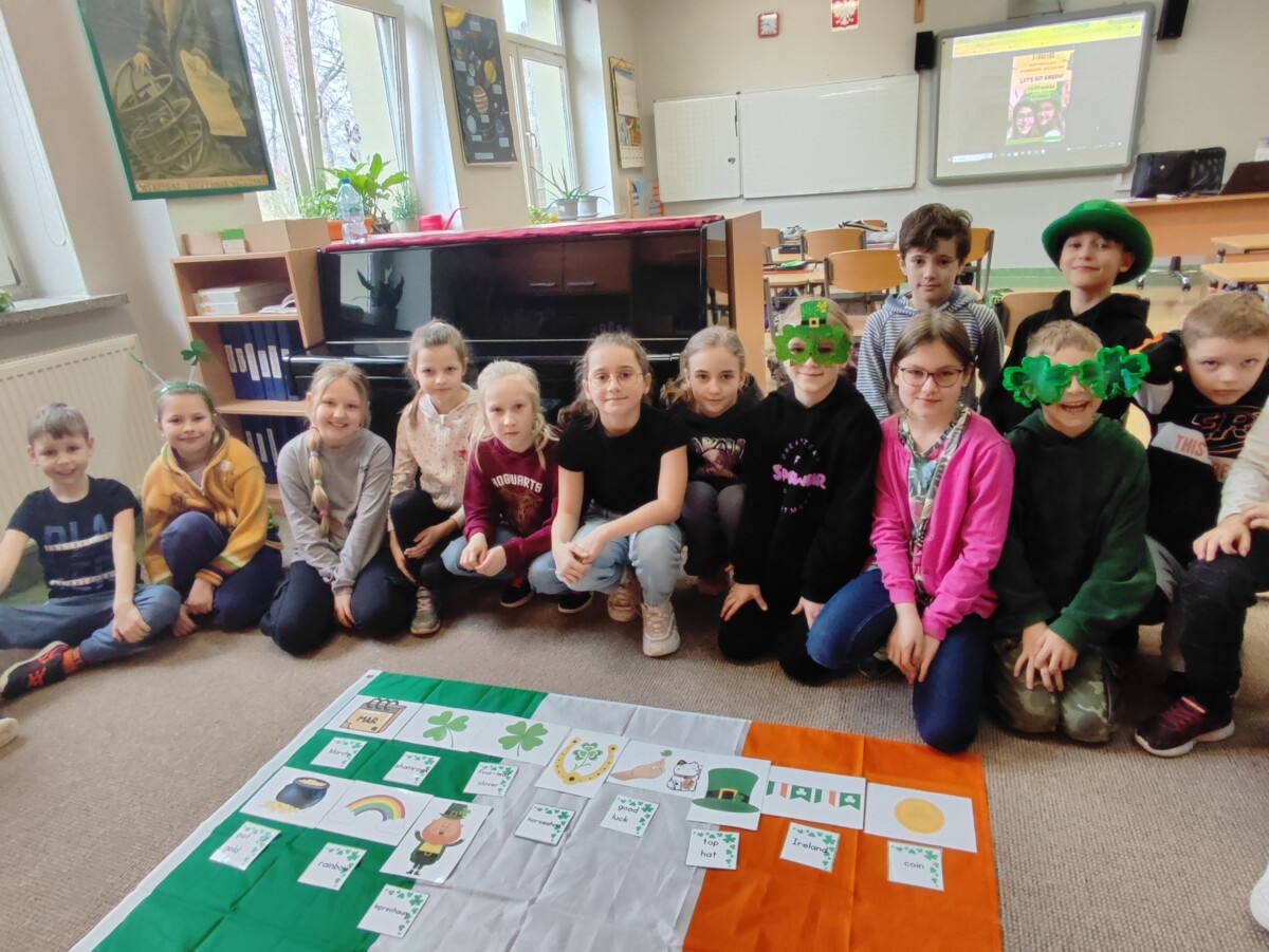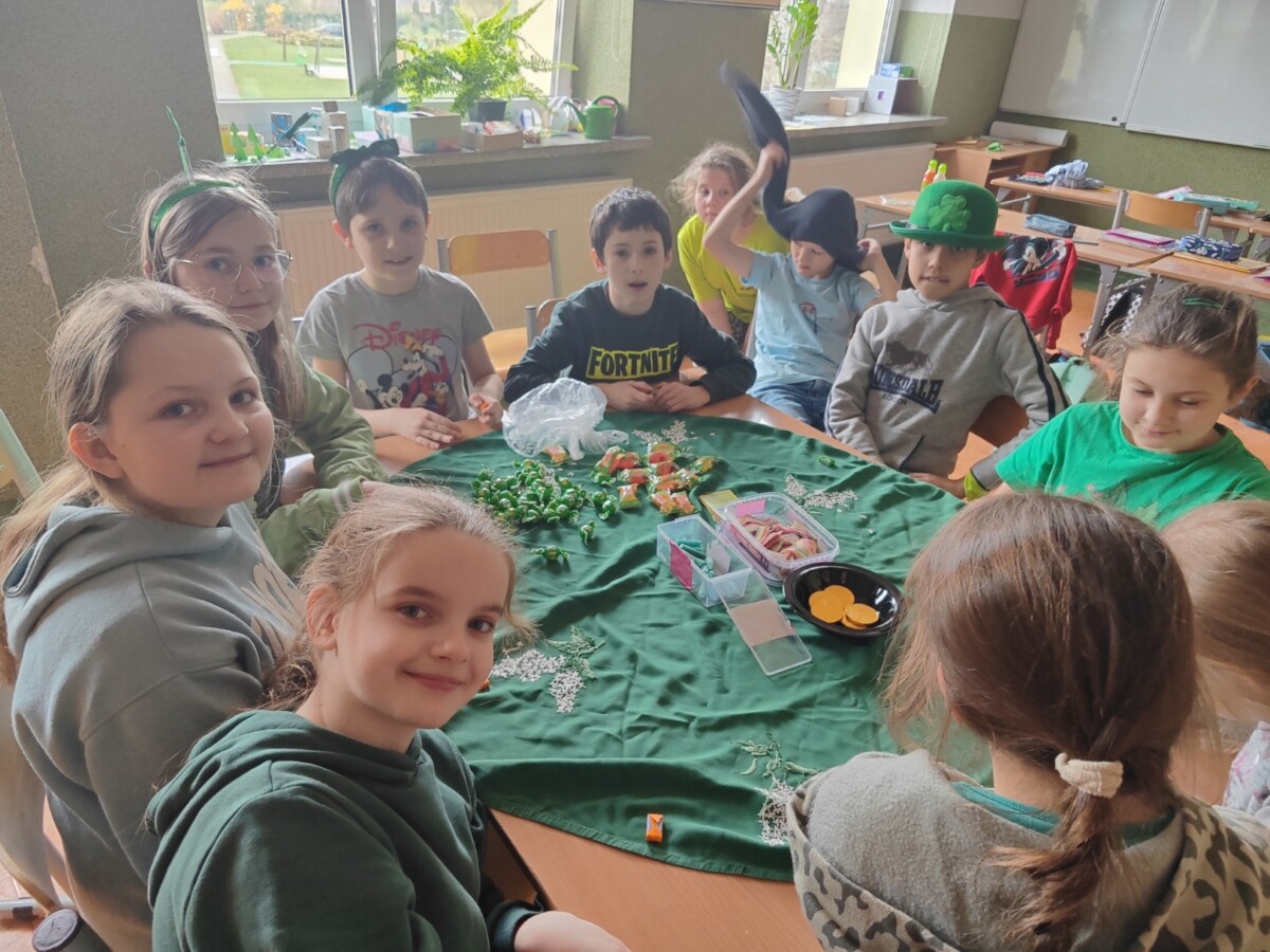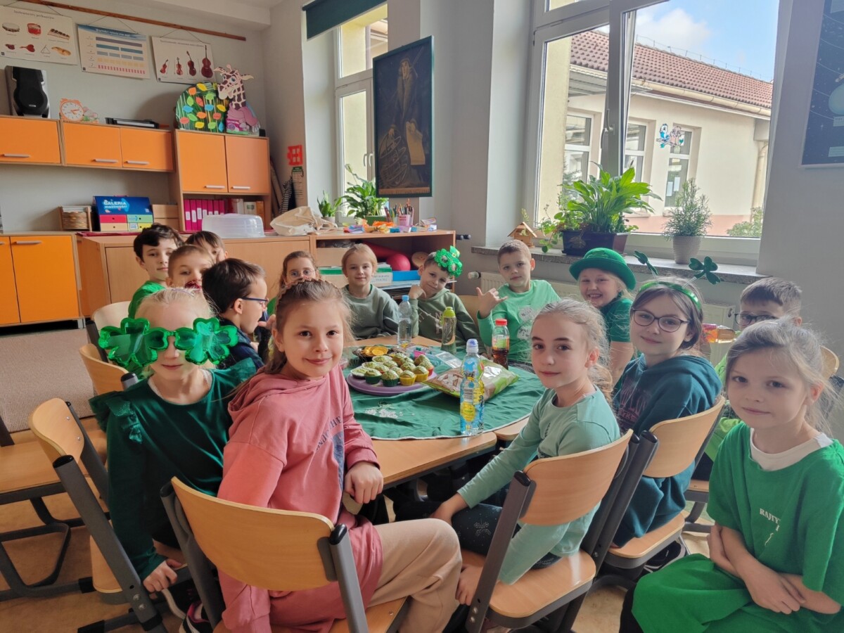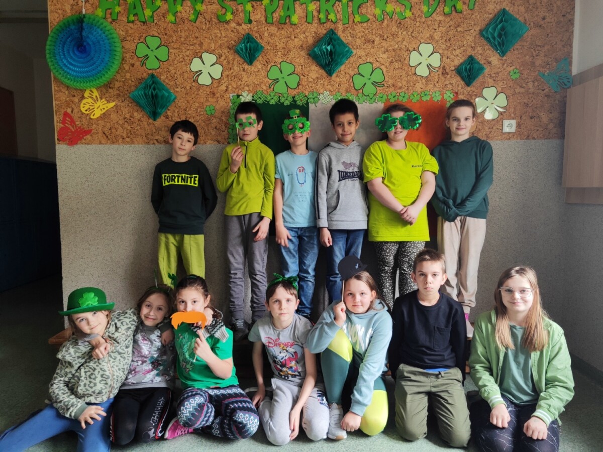 W dniach 13-19 marca uczniowie naszej szkoły wzięli udział w ogólnopolskim wydarzeniu kulturowym „Let’s Go Green” zorganizowanym z okazji Dnia Świętego Patryka. Na lekcjach języka angielskiego klasy poznały bliżej biografię Świętego Patryka oraz kulturę i tradycję Irlandii. Na uczniów czekało wiele wyzwań, takich jak liczenie do 10 po irlandzku oraz odtańczenie Irish Jig Dance. Uczniowie przygotowali także dekoracje, lapbooki i plakaty prezentujące ciekawostki związane z Zielonym Świętem. Starsze klasy wzięły również udział w grze terenowej, w której poszukiwali ciekawostek o Irlandii rozmieszczonych na szkolnym korytarzu. W ramach podsumowania wydarzenia uczniowie całej szkoły ubrali się na zielono, a w nagrodę czekała na nich mini fotobudka i słodkie poczęstunki. Wybrane zespoły z klas 4-7 wzięły udział w szkolnym konkursie „Let’s go green”, który sprawdził ich wiedzę na temat Zielonej Wyspy oraz Świętym Patryku. Najlepiej poradzili sobie przedstawiciele klasy 5: Paweł Kossak, Maksymilian Ledwolorz i Kuba Śmiarowski.