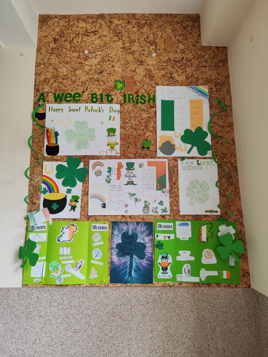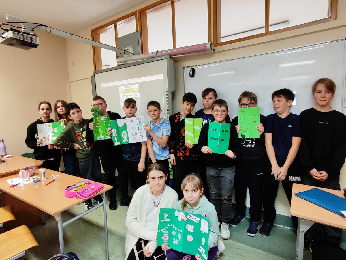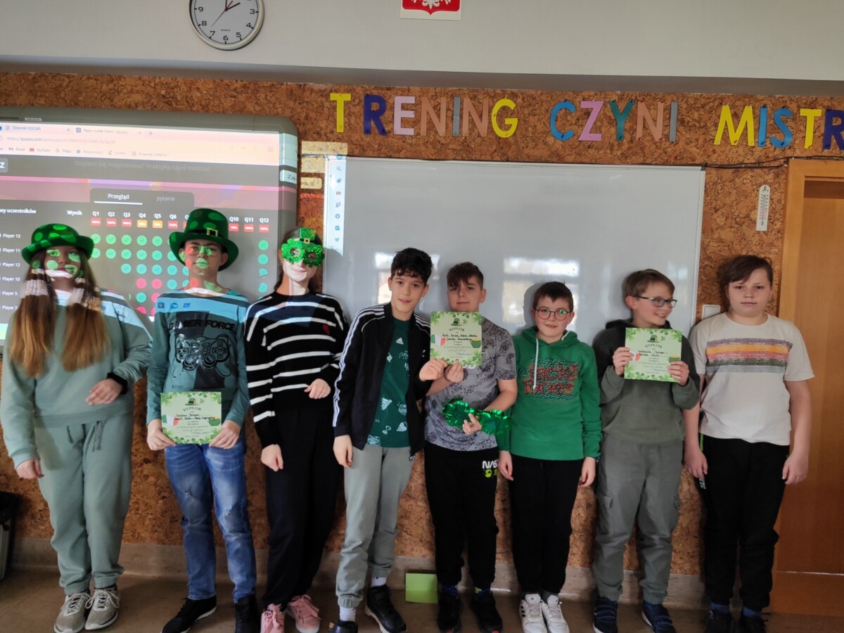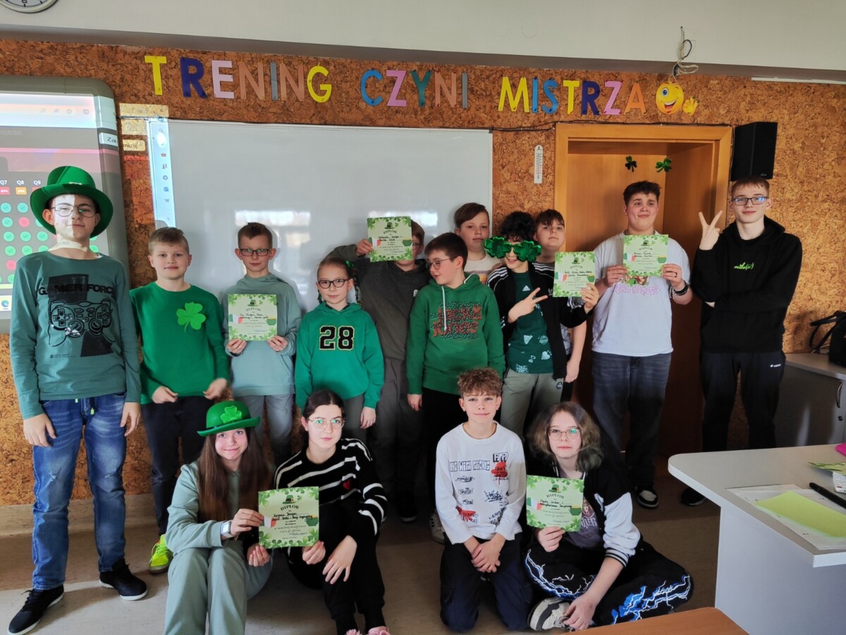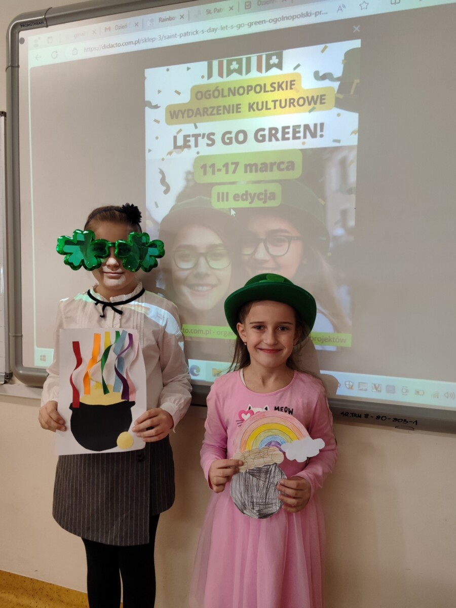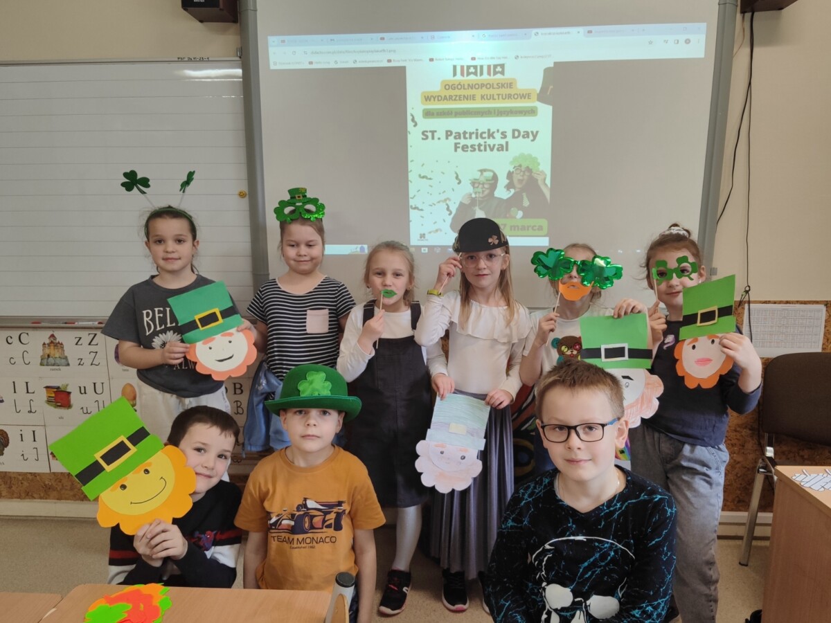 W dniach 13-19 marca uczniowie naszej szkoły wzięli udział w ogólnopolskim wydarzeniu kulturowym „Let’s Go Green” zorganizowanym z okazji Dnia Świętego Patryka. Na lekcjach języka angielskiego klasy poznały bliżej biografię Świętego Patryka oraz kulturę i tradycję Irlandii. Na uczniów czekało wiele wyzwań, takich jak liczenie do 10 po irlandzku oraz odtańczenie Irish Jig Dance. Uczniowie przygotowali także dekoracje, lapbooki i plakaty prezentujące ciekawostki związane z Zielonym Świętem. Starsze klasy wzięły również udział w grze terenowej, w której poszukiwali ciekawostek o Irlandii rozmieszczonych na szkolnym korytarzu. W ramach podsumowania wydarzenia uczniowie całej szkoły ubrali się na zielono, a w nagrodę czekała na nich mini fotobudka i słodkie poczęstunki. Wybrane zespoły z klas 4-7 wzięły udział w szkolnym konkursie „Let’s go green”, który sprawdził ich wiedzę na temat Zielonej Wyspy oraz Świętym Patryku. Najlepiej poradzili sobie przedstawiciele klasy 5: Paweł Kossak, Maksymilian Ledwolorz i Kuba Śmiarowski.