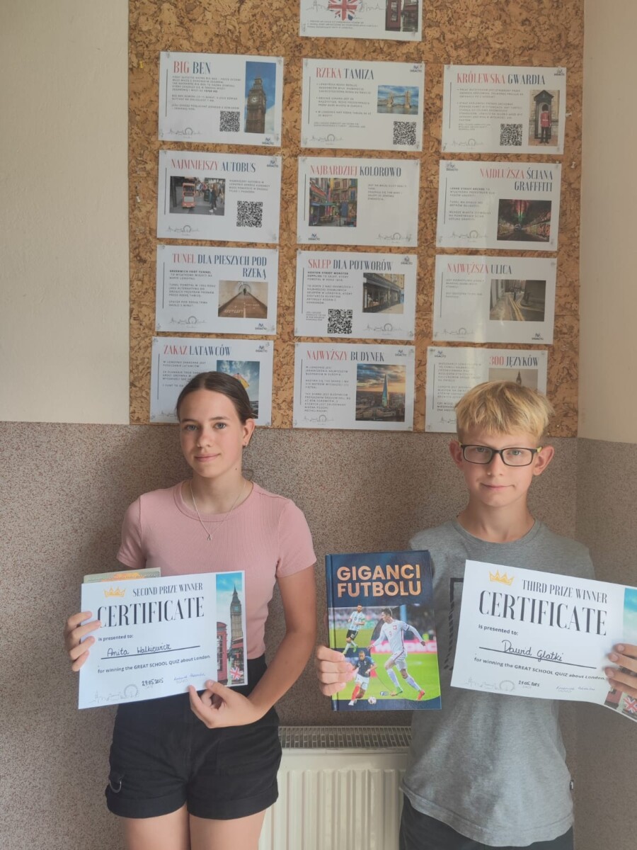 W ostatnim tygodniu maja naszą szkołę opanowała prawdziwie brytyjska gorączka! W ramach ogólnopolskiego projektu „London Week”, uczniowie zanurzyli się w kulturze i atmosferze stolicy Wielkiej Brytanii, uczestnicząc w aktywnościach, które rozbudziły ich kreatywność i wiedzę. Dla młodszych klas „London Week” oznaczał przede wszystkim warsztaty DIY, podczas których małe rączki z zapałem wyklejały kolorowymi materiałami sylwetki słynnych londyńskich ikon. Atmosferę dopełniała tradycyjna angielska herbatka, której smak stał się pretekstem do opowieści o brytyjskich zwyczajach. Nie zabrakło też porcji fascynujących ciekawostek o Londynie, które rozbudzały wyobraźnię i poszerzały horyzonty najmłodszych podróżników. Zupełnie inne wyzwanie czekało starsze klasy, dla których został przygotowany „Great School Quiz”, w którym musieli zmierzyć się z podchwytliwymi pytaniami dotyczącymi historii, geografii, kultury, sportu i życia codziennego Londynu. Wyniki konkursu wyglądały następująco: