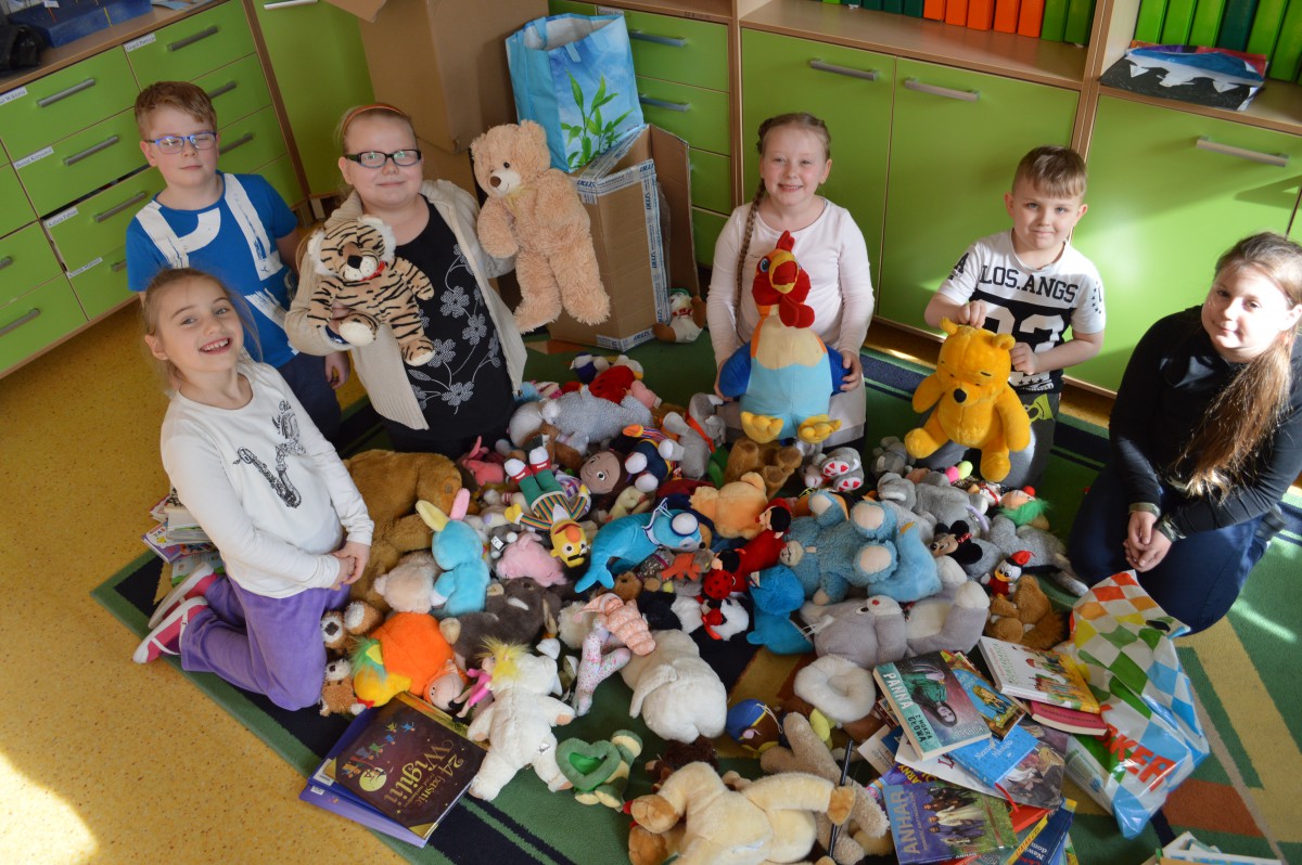 Nikogo chyba nie trzeba przekonywać, że uczniowie naszej szkoły nie pozostają obojętni kiedy ktoś jest w potrzebie. Potwierdziło się to, podczas akcji “Podziel się pluszakiem”. Kto tylko chciał mógł przynieść pluszaka lub książeczkę, które zostały przekazane do Ośrodka Rehabilitacyjnego w Rusinowicach.