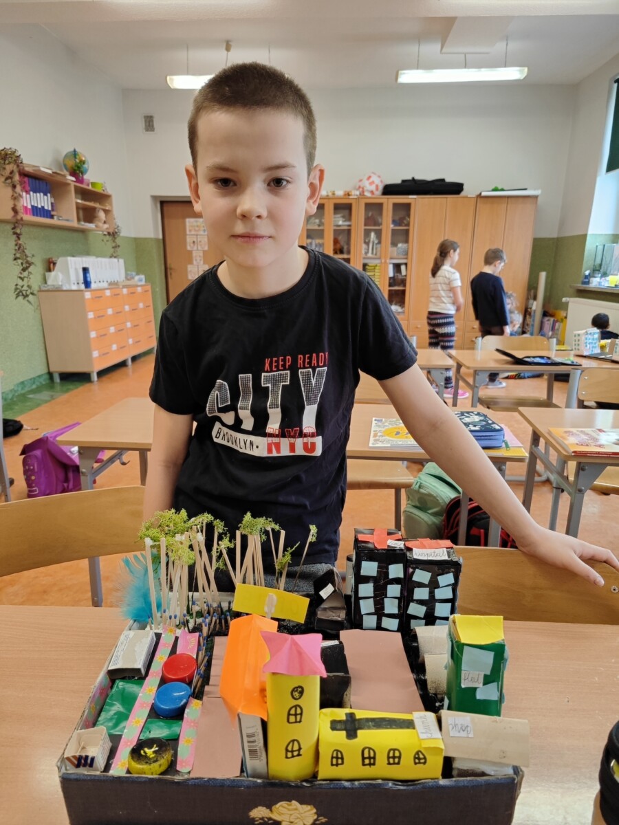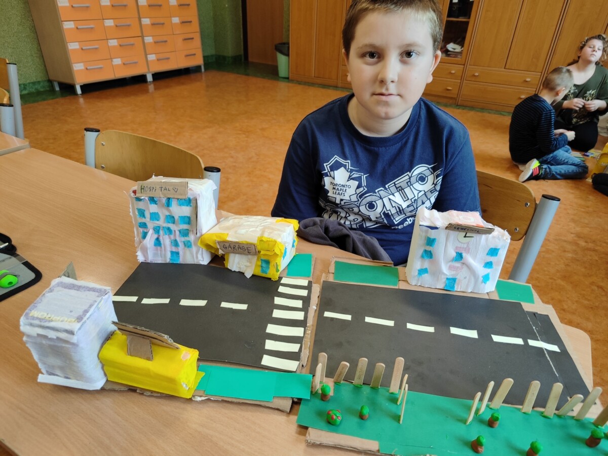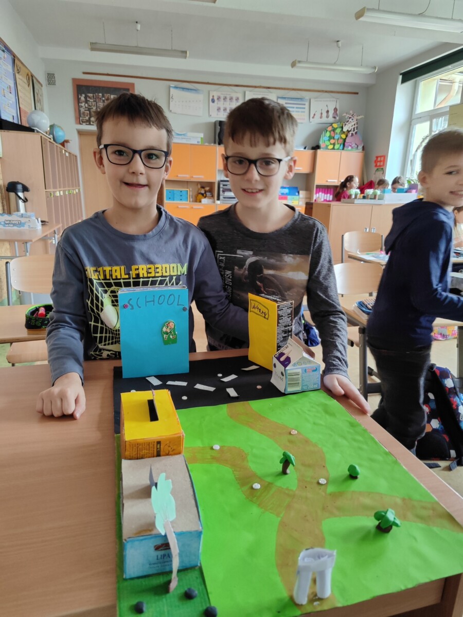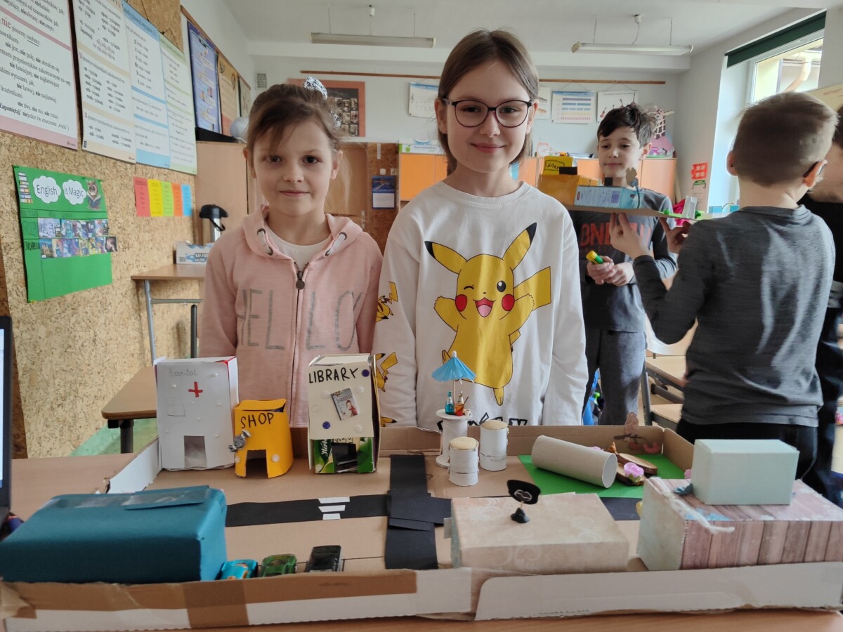 Klasy trzecie w ramach omawianego działu o miejscach w mieście zaangażowały się w projekt plastyczny „My Mini City”. Uczniowie na lekcjach języka angielskiego zamienili się w małych budowniczych i skonstruowali swoje własne miasteczka. Trzecioklasiści nie tylko wykazali się wielką kreatywnością, ale potrafią już nazywać różne budynki i określać ich położenie w języku angielskim.