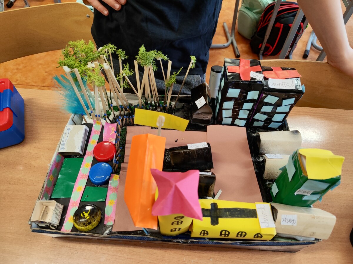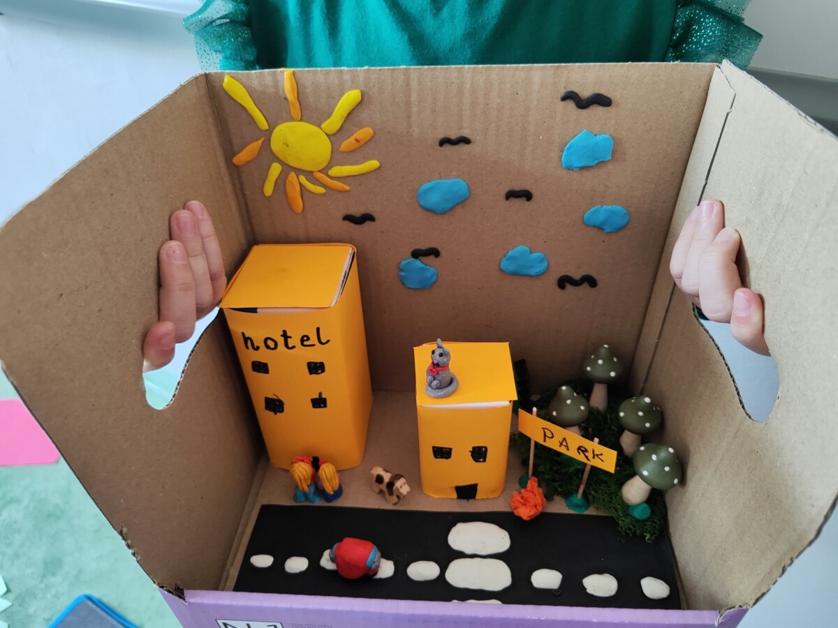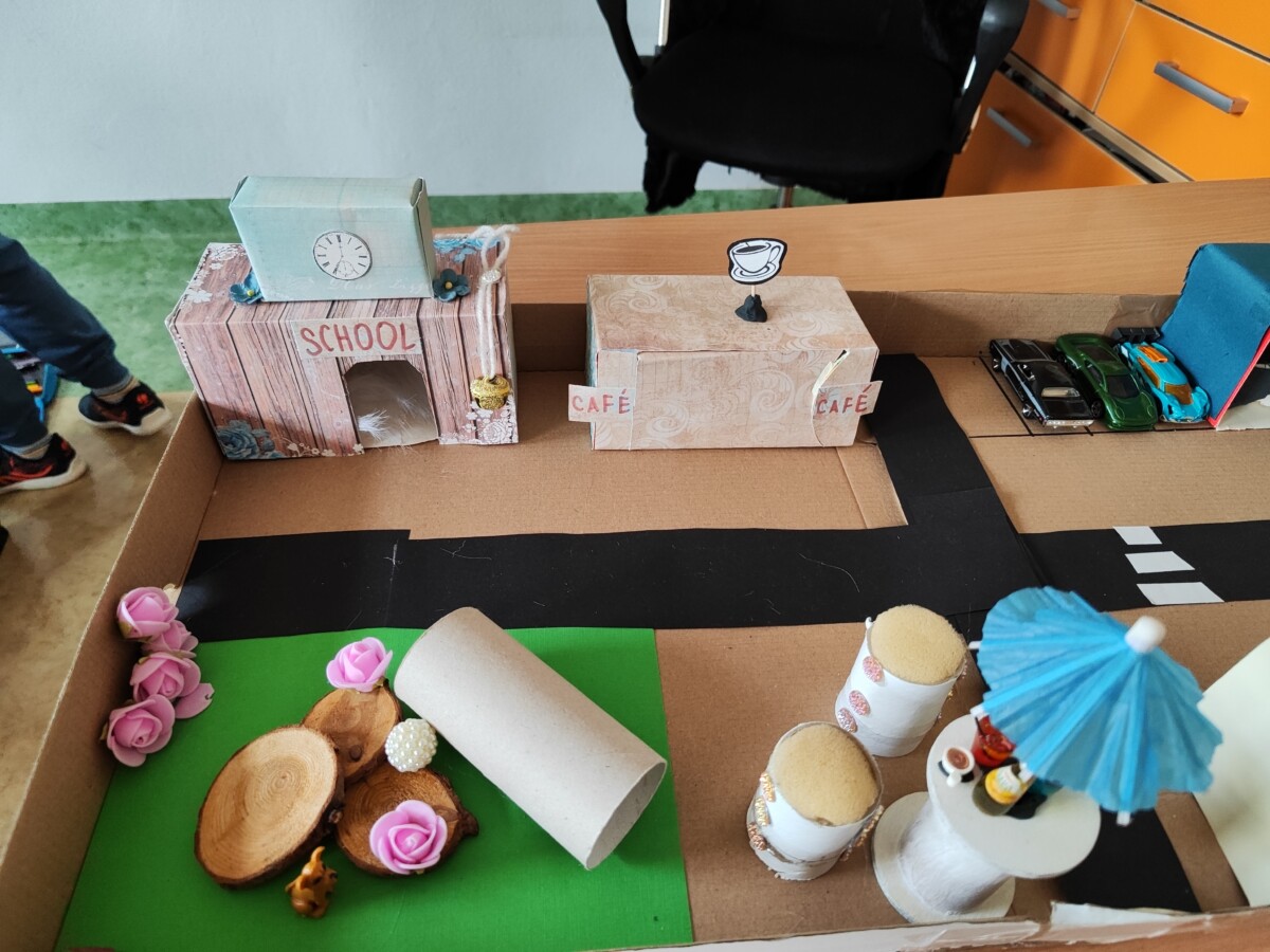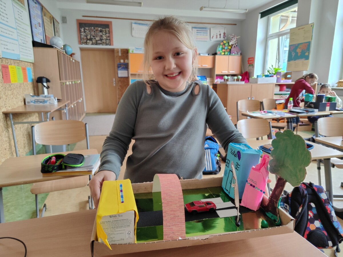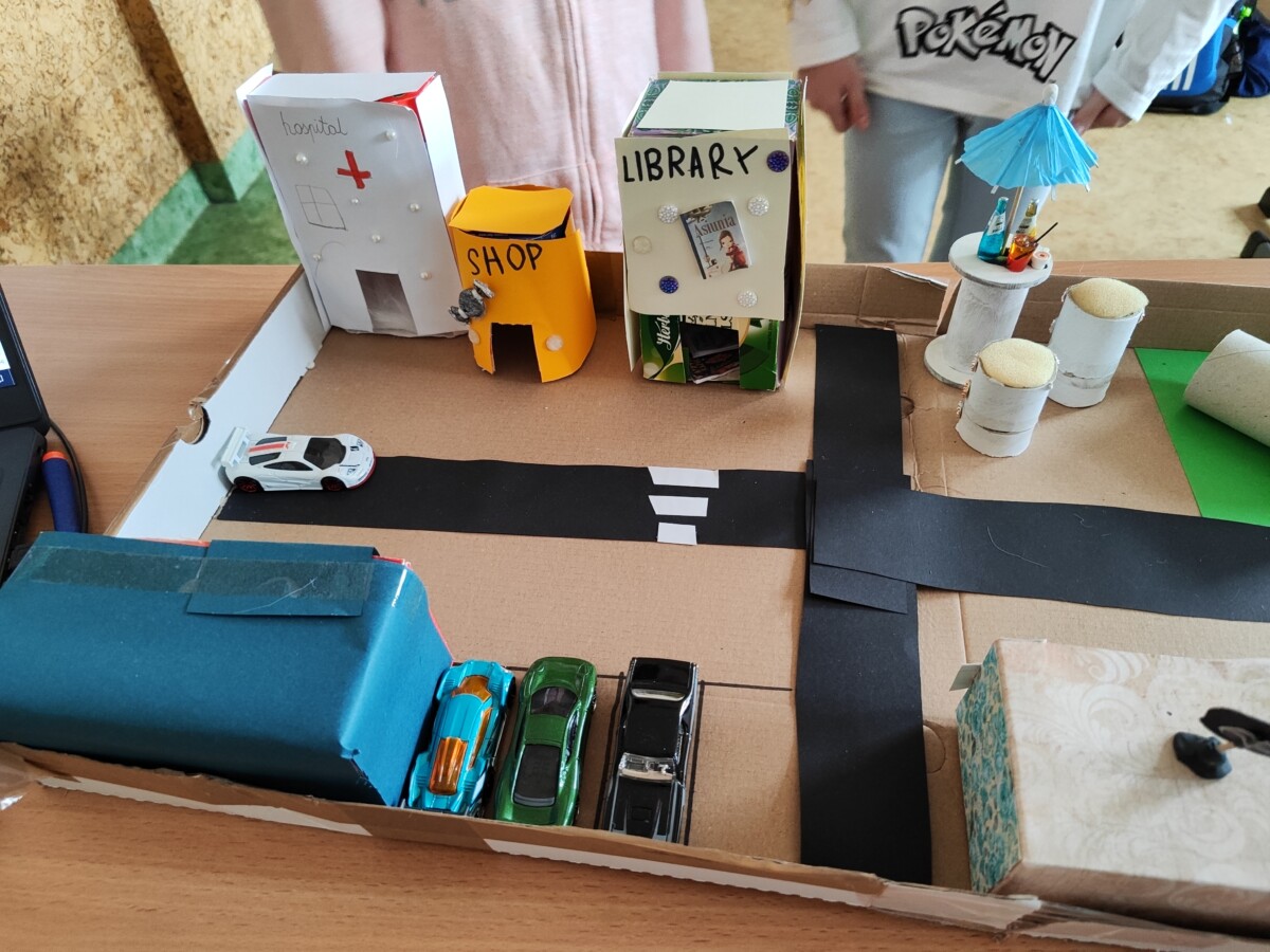 Klasy trzecie w ramach omawianego działu o miejscach w mieście zaangażowały się w projekt plastyczny „My Mini City”. Uczniowie na lekcjach języka angielskiego zamienili się w małych budowniczych i skonstruowali swoje własne miasteczka. Trzecioklasiści nie tylko wykazali się wielką kreatywnością, ale potrafią już nazywać różne budynki i określać ich położenie w języku angielskim.