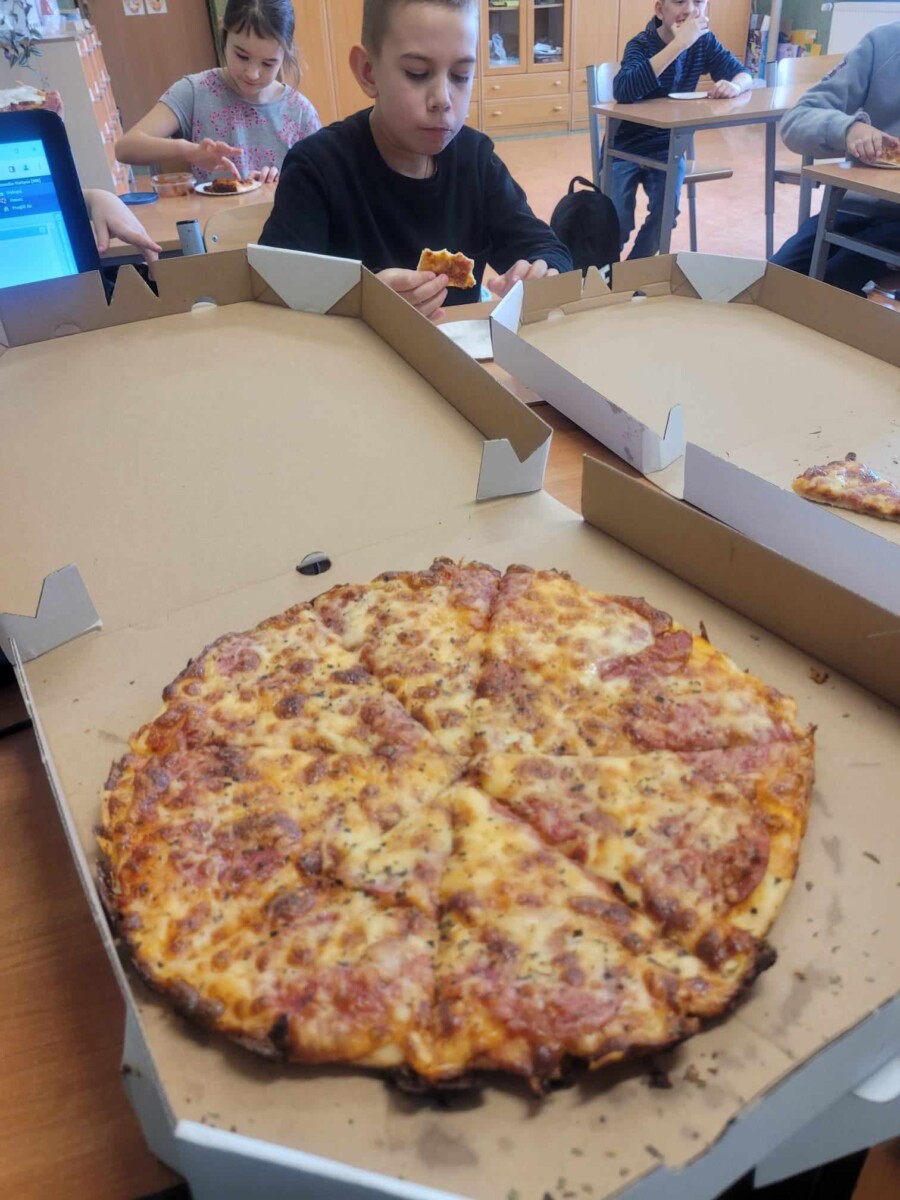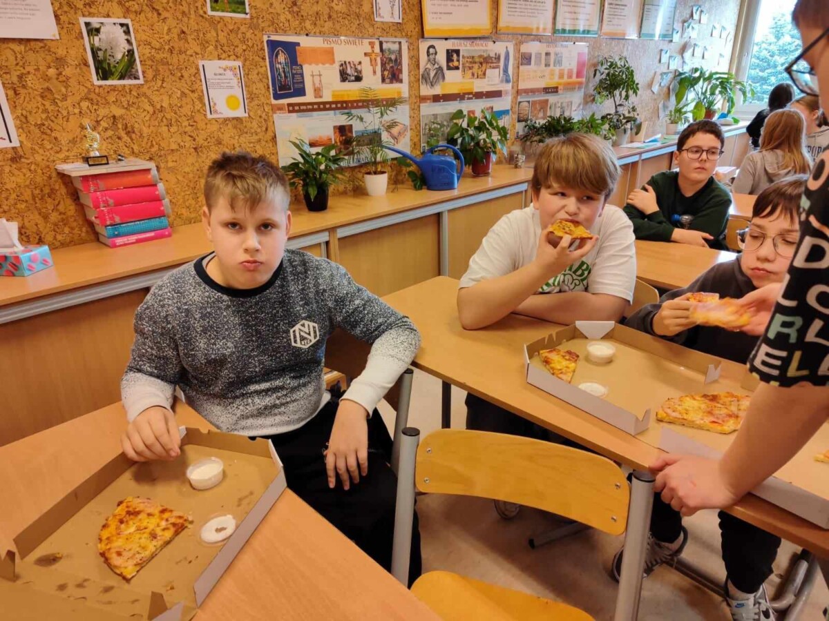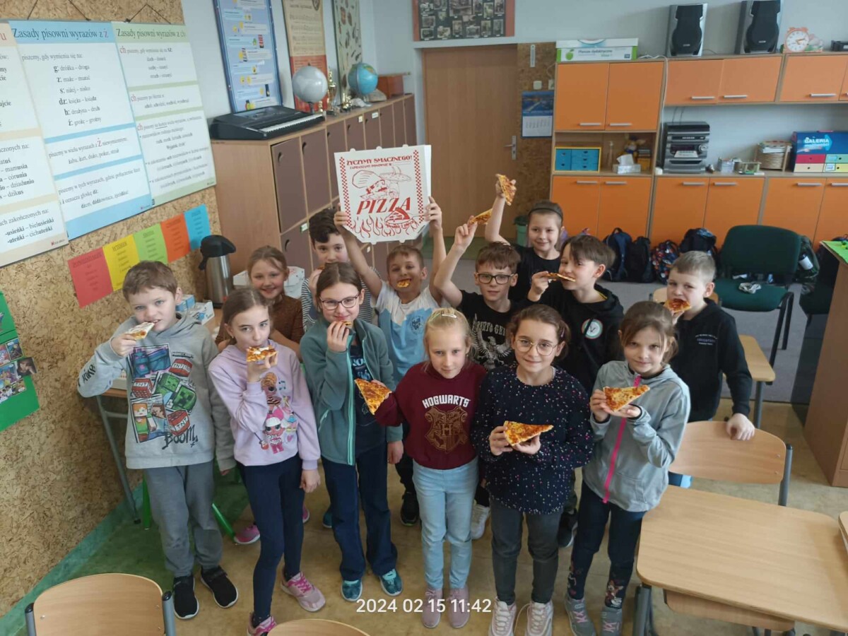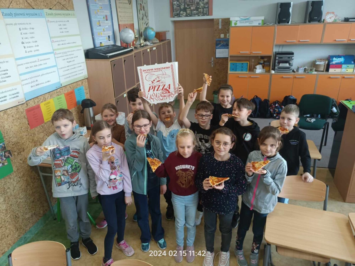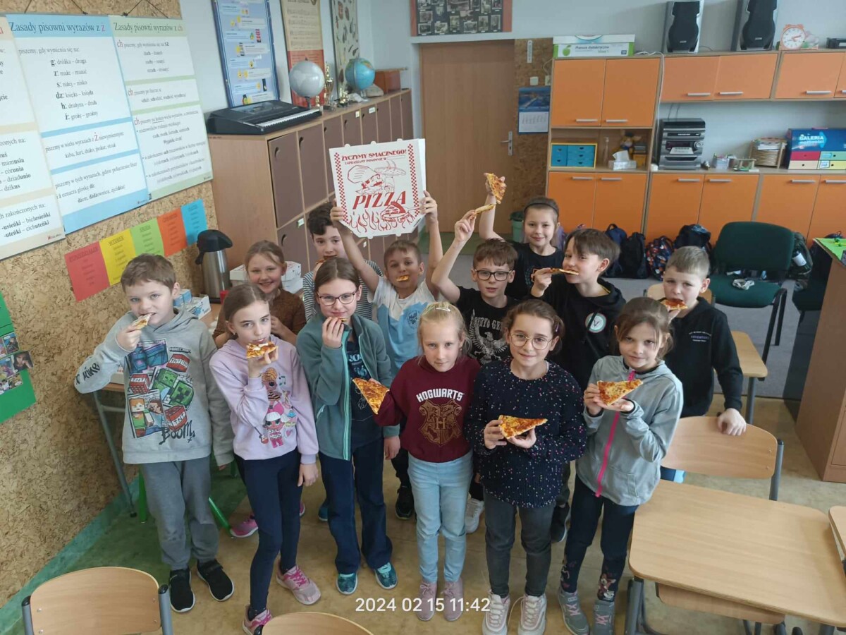 Oficjalnie na świecie istnieje około 50 rodzajów pizzy. Co ciekawe, pierwsze dania tego typu zaczęli serwować nie Rzymianie, a Grecy – był to placek polany oliwą i zapiekany z ziołami. Święto pizzy odbywa się co roku 09.02, jednak ze względu na to, że tłusty czwartek przypadł w tym roku na 08.02 obchody tego święta zostały przeniesione na 15.02. uczniowie bardzo chętnie degustowali się w smakach pizzy. Najczęściej wybierali Margheritę lub Salami. W sumie na całą szkołę zostało zamówionych 51 pizz. Dziękujemy restauracji „Na Górce”, która podjęła się tego wyzwania. Uczniom święto przypadło bardzo do gustu i chętnie obchodziliby je częściej w ciągu roku szkolnego.