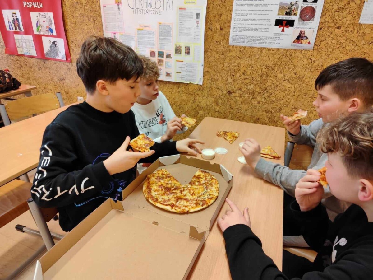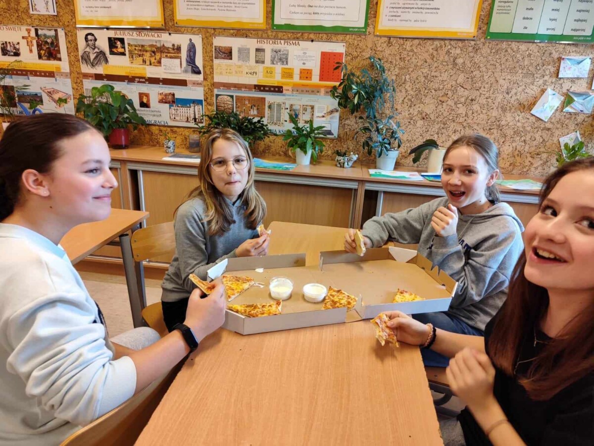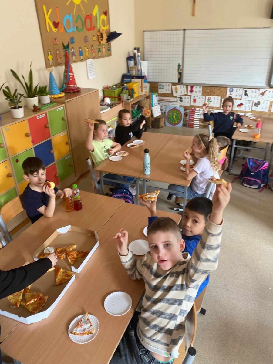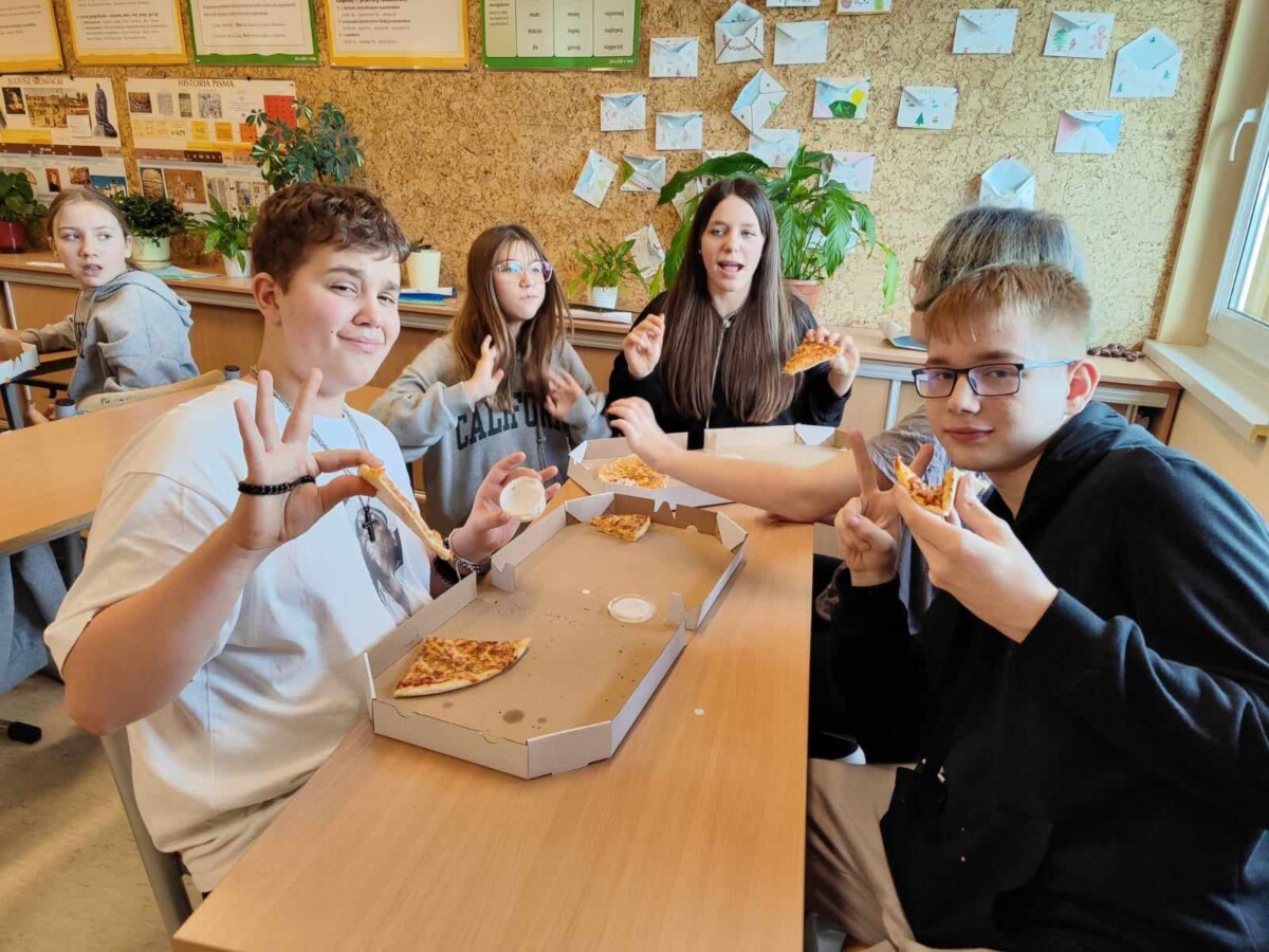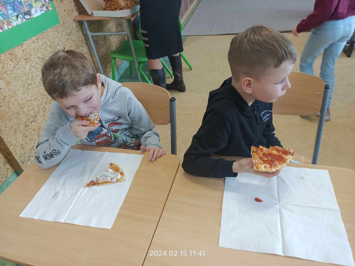 Oficjalnie na świecie istnieje około 50 rodzajów pizzy. Co ciekawe, pierwsze dania tego typu zaczęli serwować nie Rzymianie, a Grecy – był to placek polany oliwą i zapiekany z ziołami. Święto pizzy odbywa się co roku 09.02, jednak ze względu na to, że tłusty czwartek przypadł w tym roku na 08.02 obchody tego święta zostały przeniesione na 15.02. uczniowie bardzo chętnie degustowali się w smakach pizzy. Najczęściej wybierali Margheritę lub Salami. W sumie na całą szkołę zostało zamówionych 51 pizz. Dziękujemy restauracji „Na Górce”, która podjęła się tego wyzwania. Uczniom święto przypadło bardzo do gustu i chętnie obchodziliby je częściej w ciągu roku szkolnego.