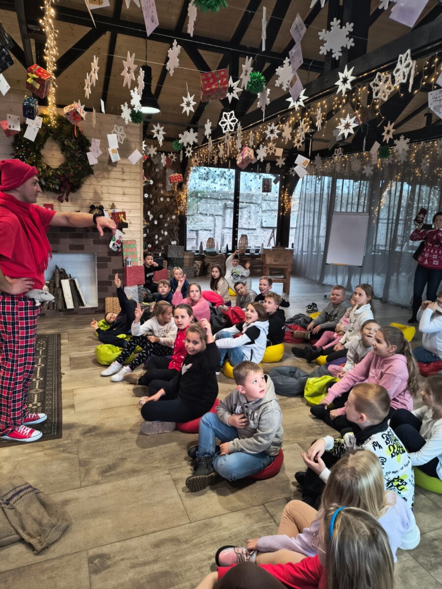 26 listopada uczniowie klas 1-4 naszej szkoły wzięli udział w wyjątkowej wycieczce do JuraParku w Krasiejowie z okazji Mikołajek. Dzieci miały okazję uczestniczyć w niezapomnianej „Ścieżce Świętego Mikołaja”, pełnej świątecznych atrakcji, zabawy i niespodzianek. Już na samym początku, uczniowie obejrzeli film o tematyce bożonarodzeniowej, który wprowadził wszystkich w magiczny, świąteczny nastrój. Po seansie, na dzieci czekała zabawa z elfami – pełna śmiechu i energii interaktywna rozrywka, która sprawiła, że każdy poczuł się częścią świątecznej przygody. Następnie dzieci wzięły udział w warsztatach plastycznych. Klasy 1-3 wykonały piękne świąteczne drzewka, a uczniowie klas 4 ozdabiali własnoręcznie świąteczne bombki. To była doskonała okazja do rozwinięcia kreatywności, a także wspólnej pracy i zabawy. Każdy uczeń mógł zabrać swoje dzieło do domu jako pamiątkę z tego wyjątkowego dnia.