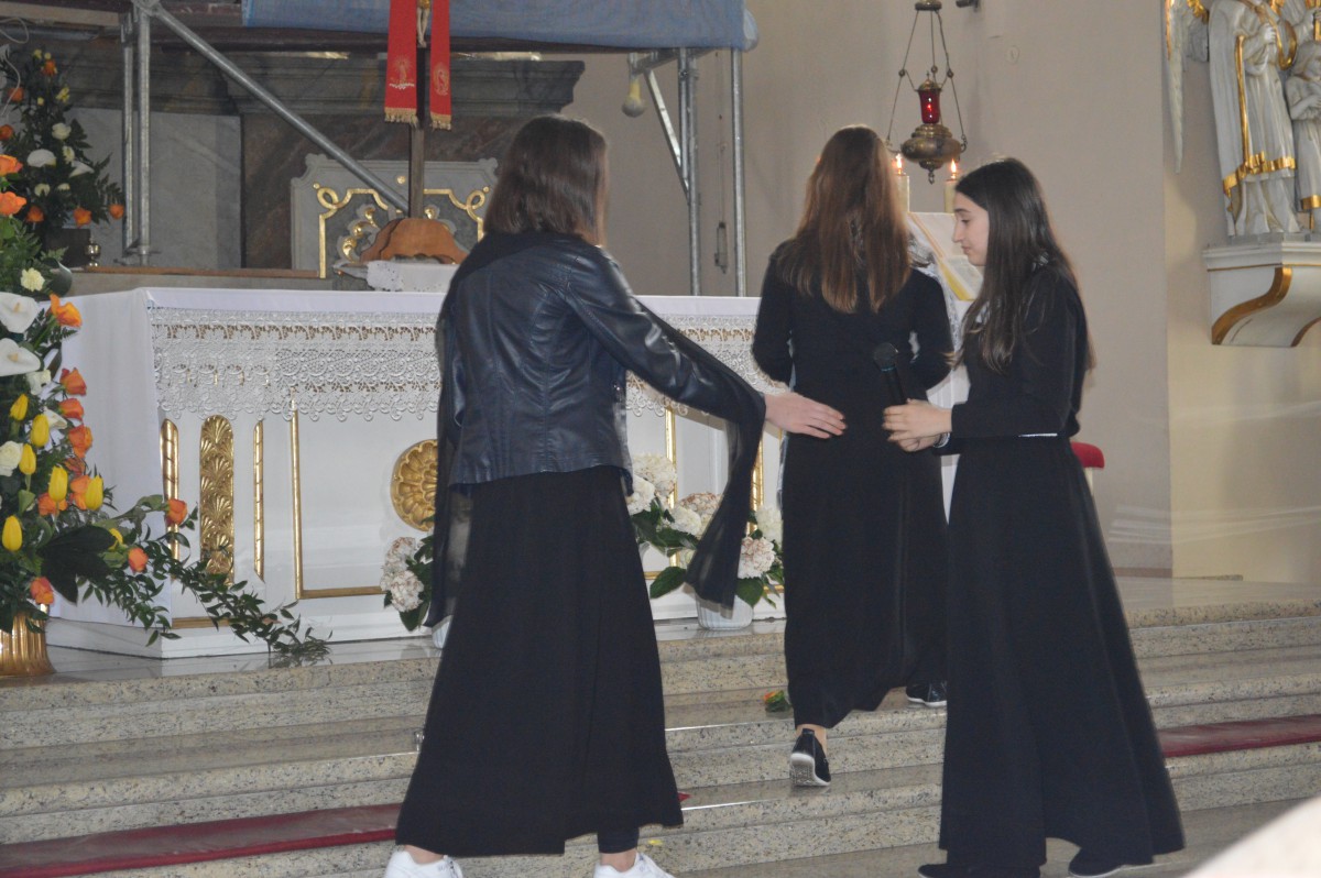 Dnia 8 kwietnia – w Niedzielę Miłosierdzia Bożego uczniowie wystawili w miejscowym kościele Misterium Wielkanocne. Celem przedstawienia, którego autorką i reżyserką była nauczycielka języka polskiego i niemieckiego naszej szkoły pani Liliana Wencel, było ukazanie odwiecznej walki dobra ze złem, oraz przypomnienie prawdziwego znaczenia przesłania płynącego ze Świąt Wielkanocnych: “Przez krzyż i pusty grób do zmartwychwstania i życia wiecznego”, tak często dziś gubionego po drodze w czasie gorączkowych przygotowań do współcześnie przeżywanych świąt.