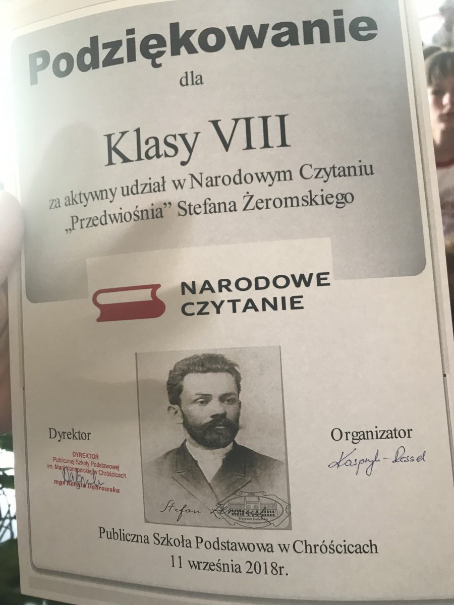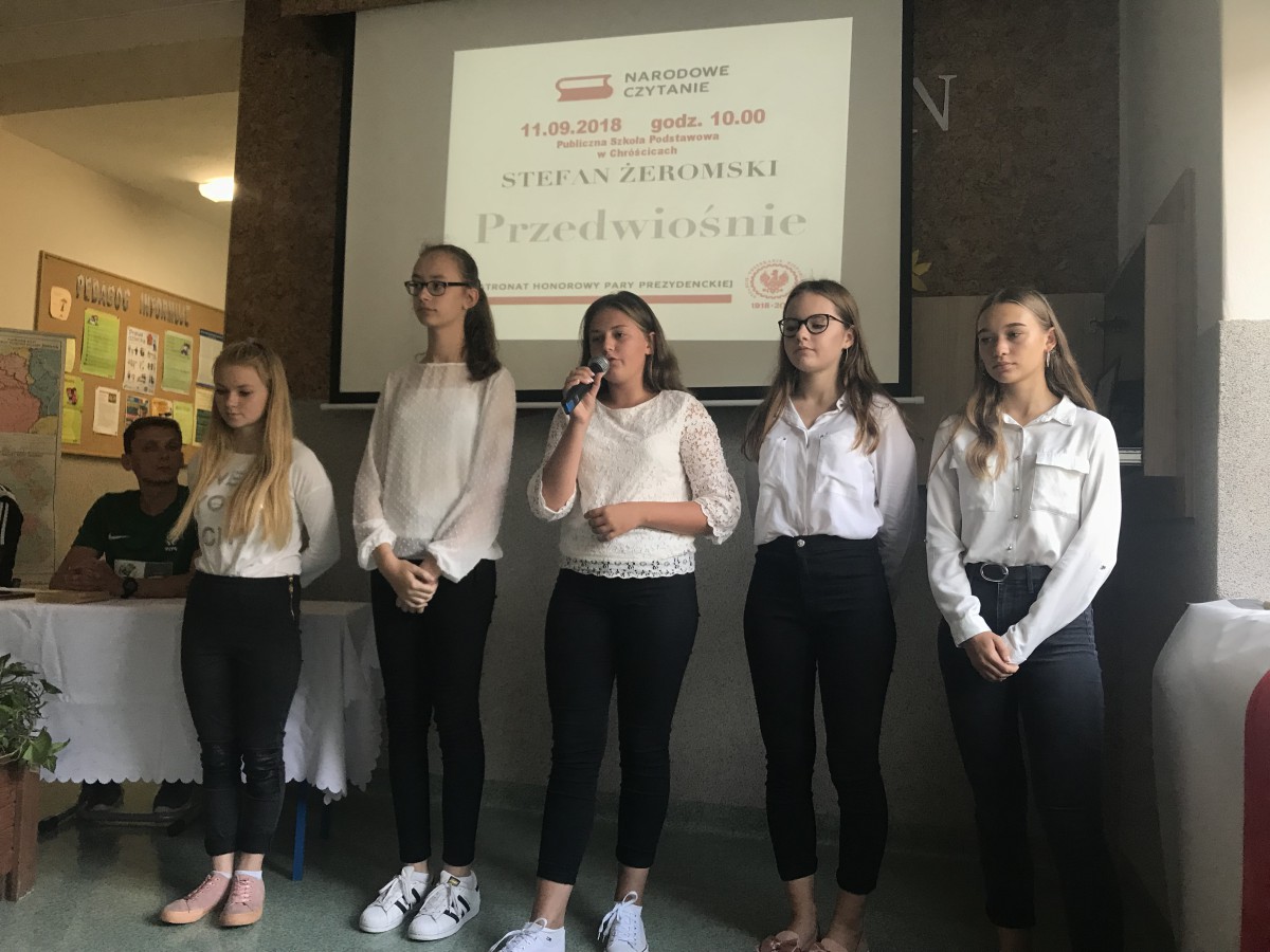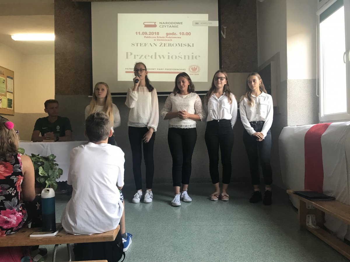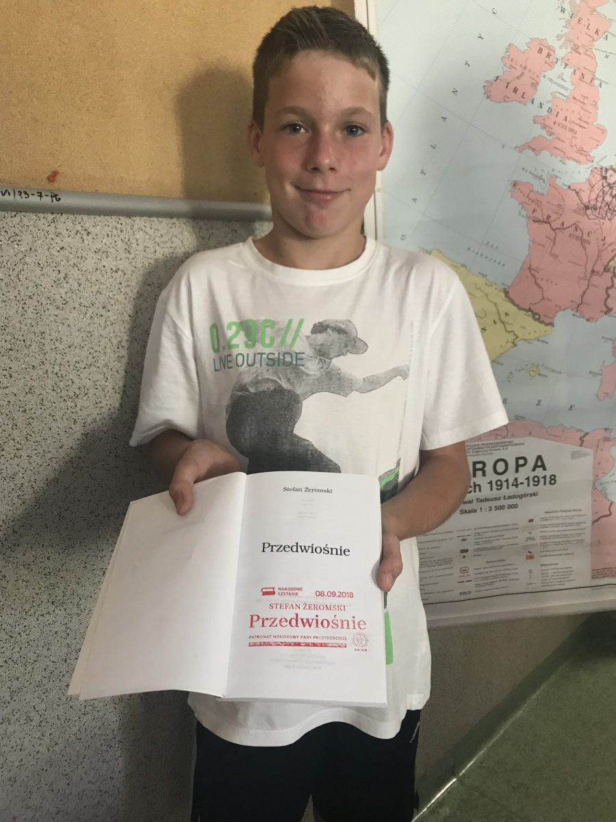 Już po raz kolejny nasza szkoła wzięła udział w organizowanej przez Prezydenta RP akcji „Narodowe Czytanie”. Tegoroczna odsłona Narodowego Czytania odbywa się w roku 100-lecia odzyskania przez Polskę niepodległości, stąd jej wyjątkowa formuła, podczas której zaproponowano dwa teksty: „Przedwiośnie” Stefana Żeromskiego oraz 44 Teksty Antologii Niepodległości.