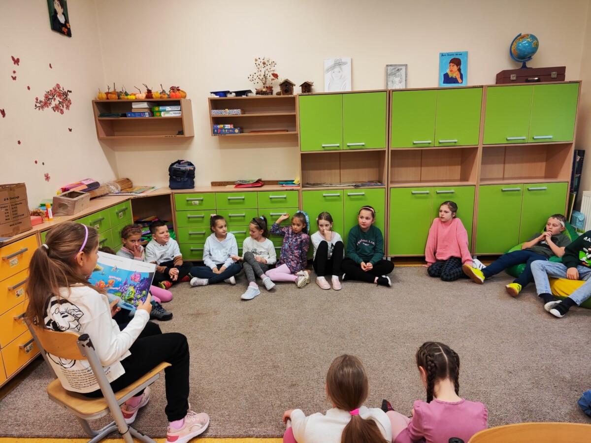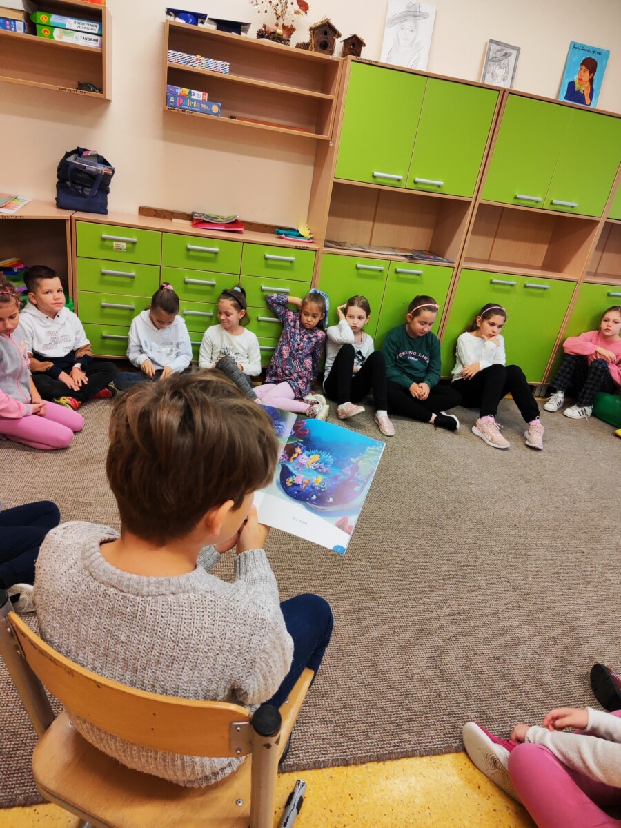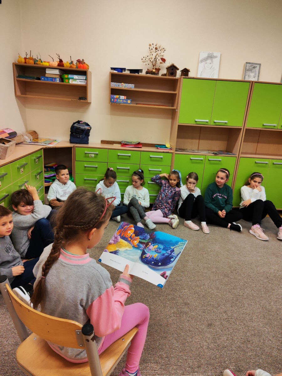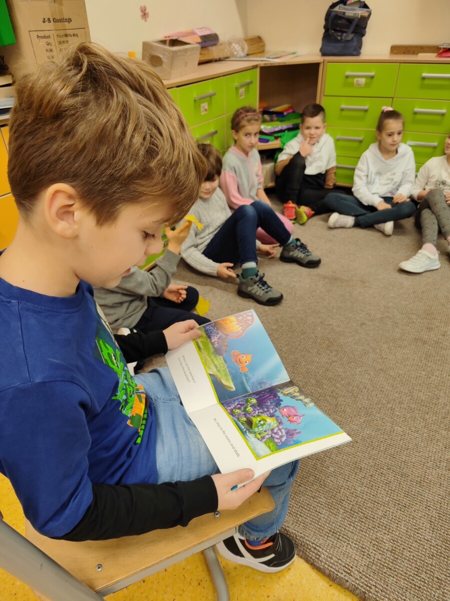 Klasa druga w ramach realizacji innowacji pedagogicznej „English is Magic” przeniosła się do pierwszej serii magicznego świata bajek i opowiadań Disneya. Uczniowie wysłuchali historyjki „Nemo in School” czytanej przez nauczyciela a następnie każdy z nich miał okazję przeczytać fragment książki. W ramach podsumowania pierwszej przeczytanej lektury uczniowie uzupełnili plakat, na którym zostały umieszczone wybrane przez nich nowe słówka. Uczniowie zaangażowali się również w projekt plastyczny, w którym każdy z nich wykonał rybę przypominającą Nemo z lektury.