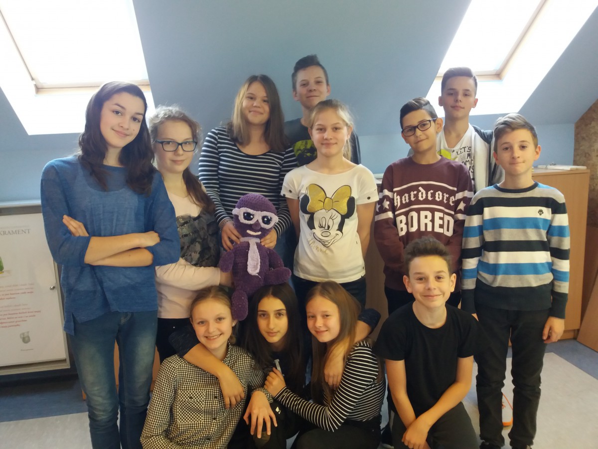 Dzięki czarom p. Liliany Kupisińskiej w naszej szkole zamieszkał Moluś Książkowy. Ten przesympatyczny fioletowy stworek uwielbia podróże, dlatego już wkrótce zacznie odwiedzać domy uczniów. Moluś nie jest wymagający – nie trzeba przygotowywać przyjęcia na jego cześć, bo ani nie je, ani nie pije. Żywi się tylko przeczytanymi mu książkami. Każdy, kto przygarnie Molusia na 1-2 dni, będzie musiał mu coś głośno poczytać. Do wspólnej lektury można zaprosić rodziców, rodzeństwo, przyjaciół – to naprawdę uszczęśliwia Molusia. W tak wyjątkowych chwilach warto zrobić pamiątkowe zdjęcie i wkleić je do Molusiowego pamiętnika oraz wysłać na adres molus.ksiazkowy@
