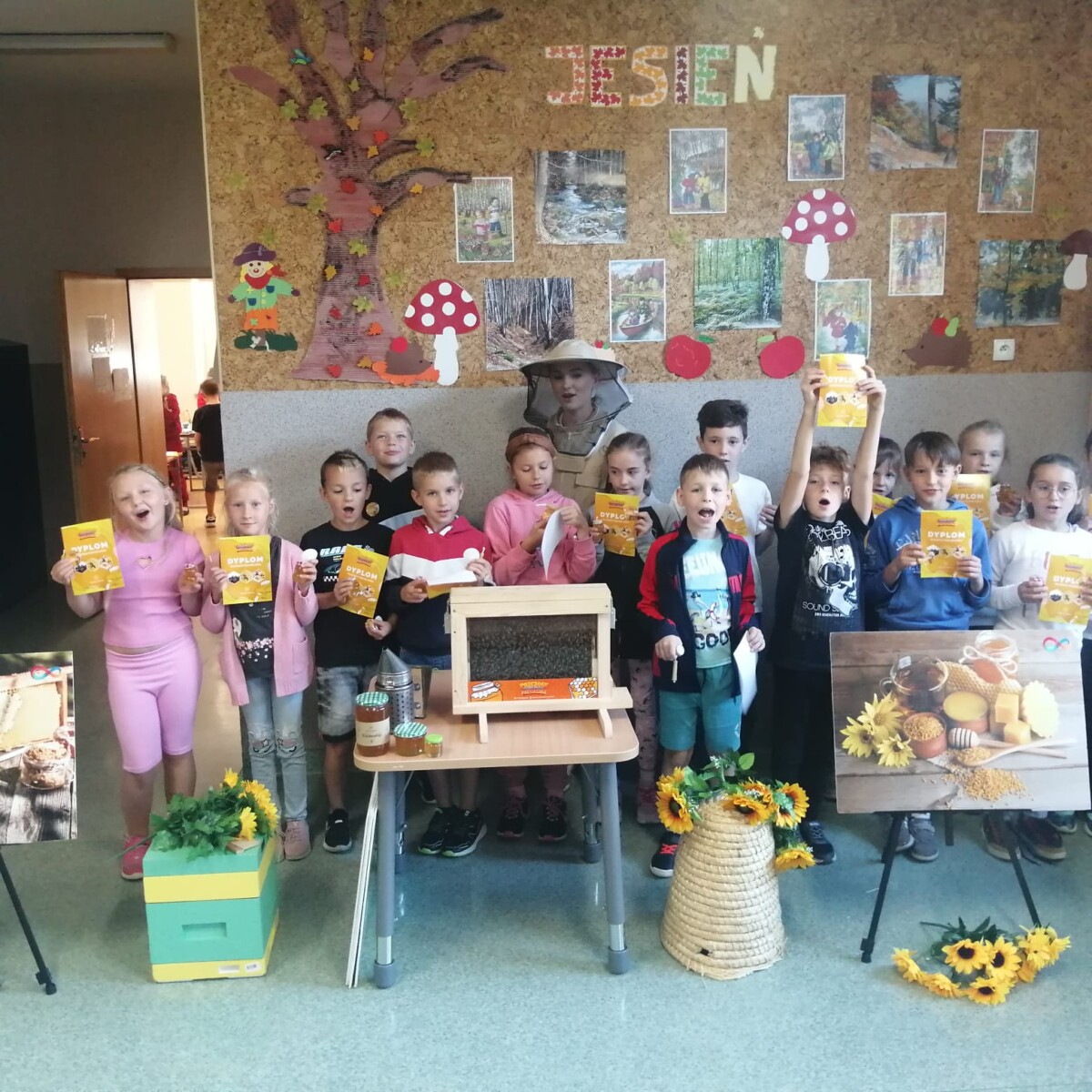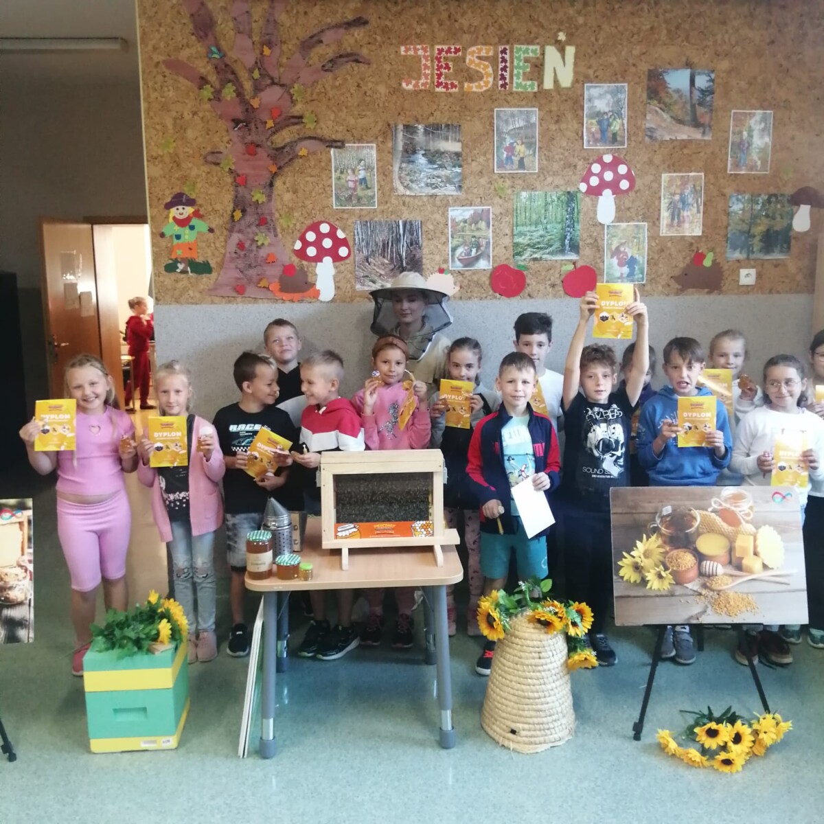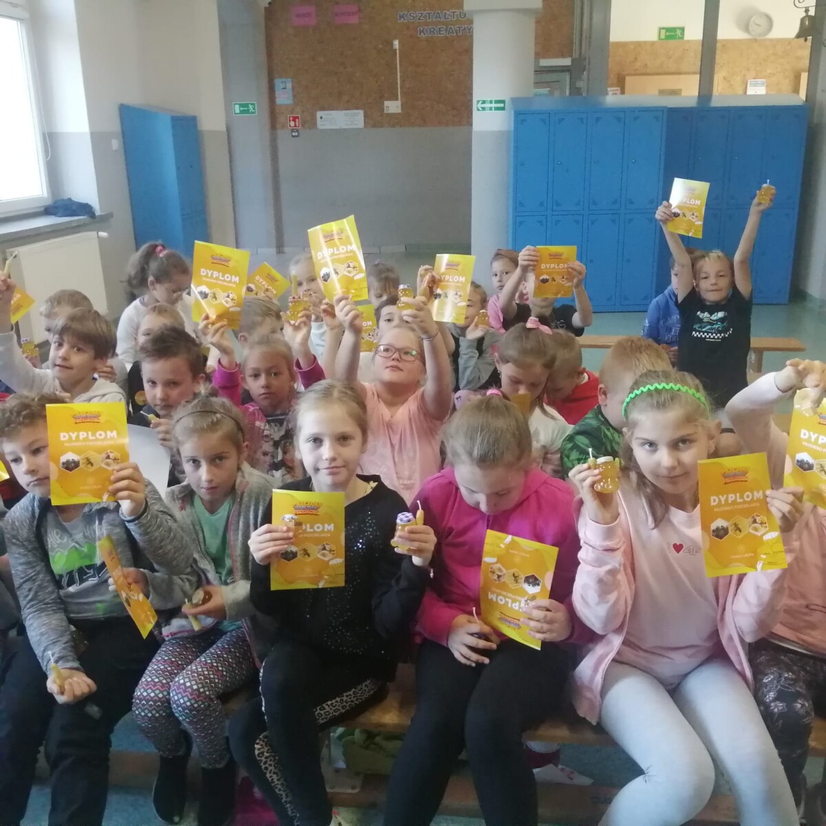 3 października 2023 r. w naszej szkole odbyły się warsztaty pszczelarskie. Cała klasa udała się na hol szkolny. Uczniowie szkoły wysłuchali ciekawych wiadomości z życia pszczół i pracy pszczelarza. Mogliśmy obserwować pszczoły w szklanym ulu. Każde dziecko wykonało świecę z wosku pszczelego. Otrzymaliśmy pamiątkowy dyplom i słoiczek miodu. Wszystkim bardzo się podobało i była to dobra lekcja, którą zapamiętamy na długo.