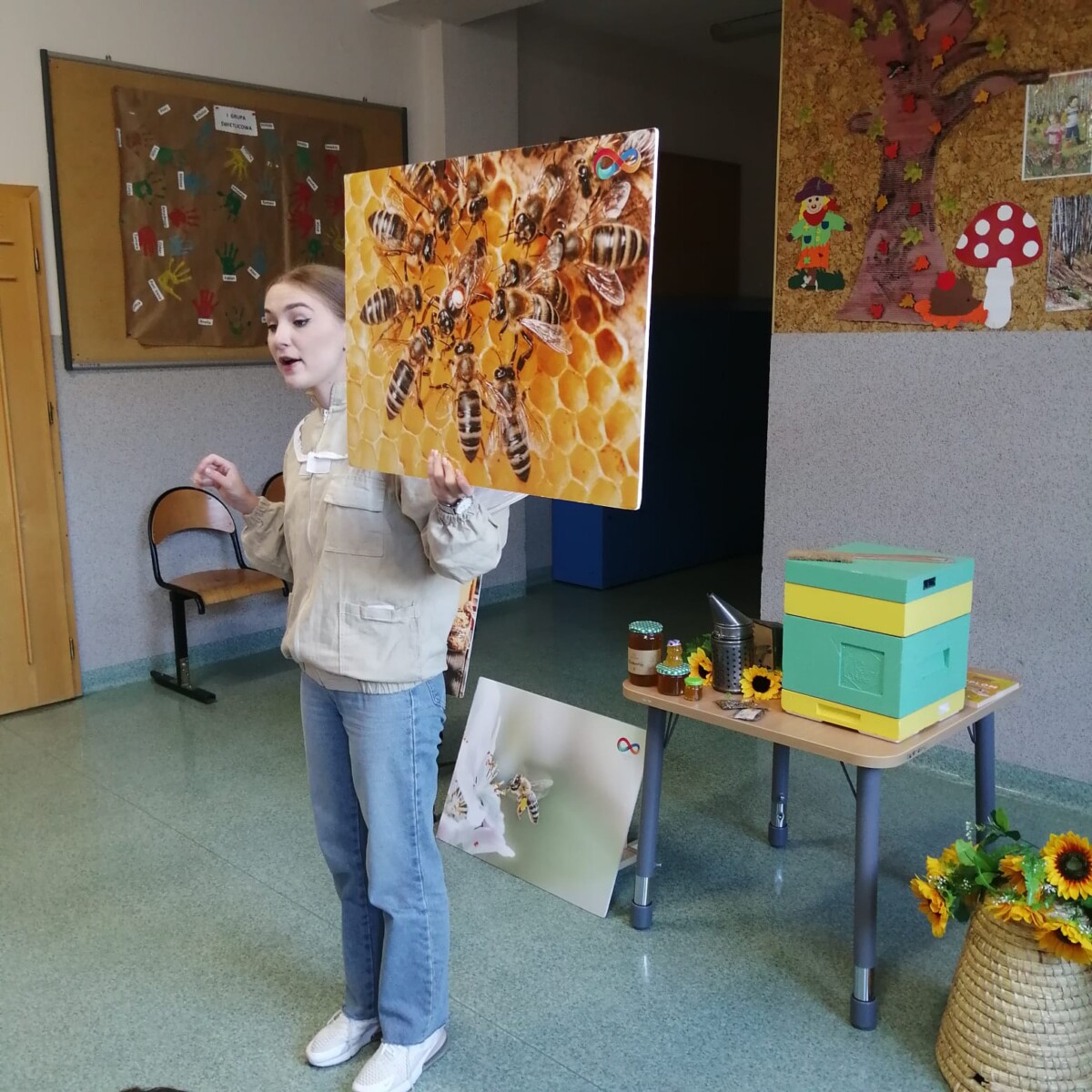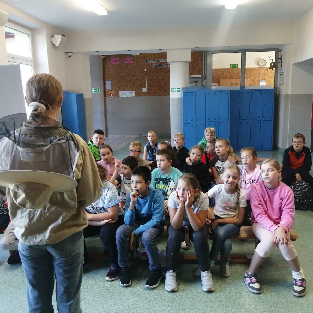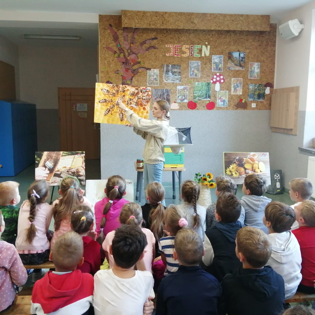 3 października 2023 r. w naszej szkole odbyły się warsztaty pszczelarskie. Cała klasa udała się na hol szkolny. Uczniowie szkoły wysłuchali ciekawych wiadomości z życia pszczół i pracy pszczelarza. Mogliśmy obserwować pszczoły w szklanym ulu. Każde dziecko wykonało świecę z wosku pszczelego. Otrzymaliśmy pamiątkowy dyplom i słoiczek miodu. Wszystkim bardzo się podobało i była to dobra lekcja, którą zapamiętamy na długo.