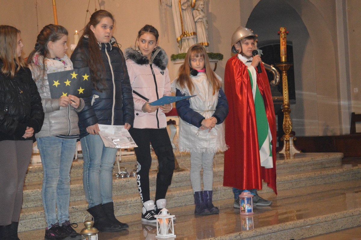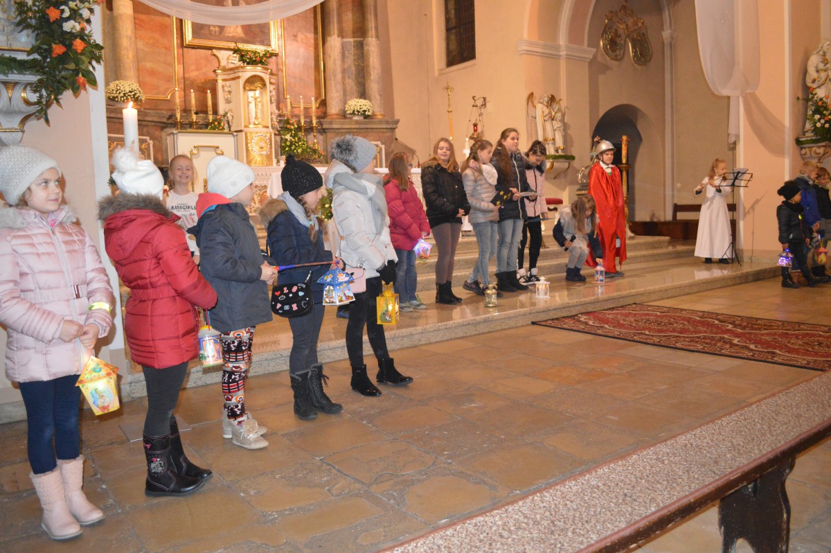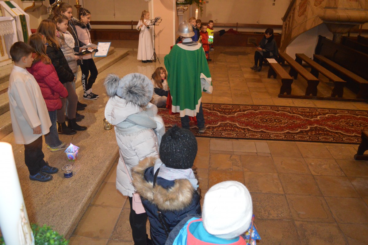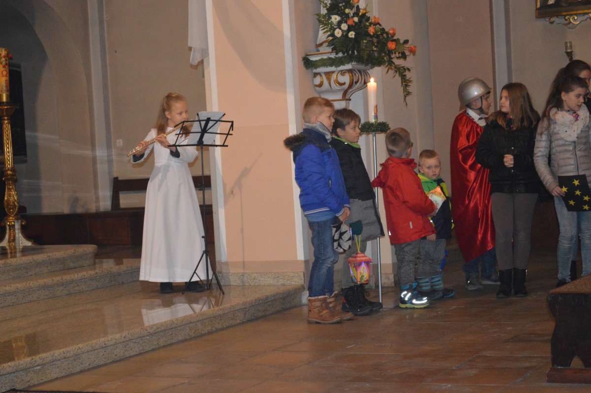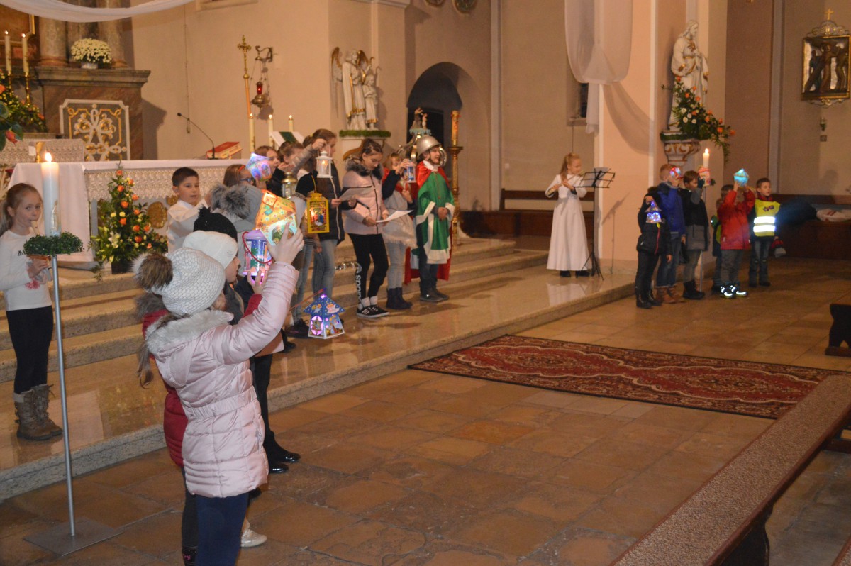 W sobotę 11 listopada uczniowie naszej szkoły wzięli udział w tradycyjnych obchodach św.Marcina. Zanim nastąpił przemarsz z lampionami, tuż po mszy uczniowie zaprezentowali przedstawienie w języku niemieckim i polskim. Pomysłodawczynią, reżyserem oraz autorką recytowanych wierszy była pani Liliana Wencel, która jest nauczycielem języka niemieckiego. Przedstawienie o świętym Marcinie miało nie tylko przypomnieć sylwetkę i życiorys świętego-wraz ze słynną sceną  dzielenia się płaszczem z żebrakiem, ale przede wszystkim skłonić widzów do chwili refleksji nad własnym życiem i zastanowieniem się nad zmianą swej postawy wobec innych-na wzór świętego Marcina.