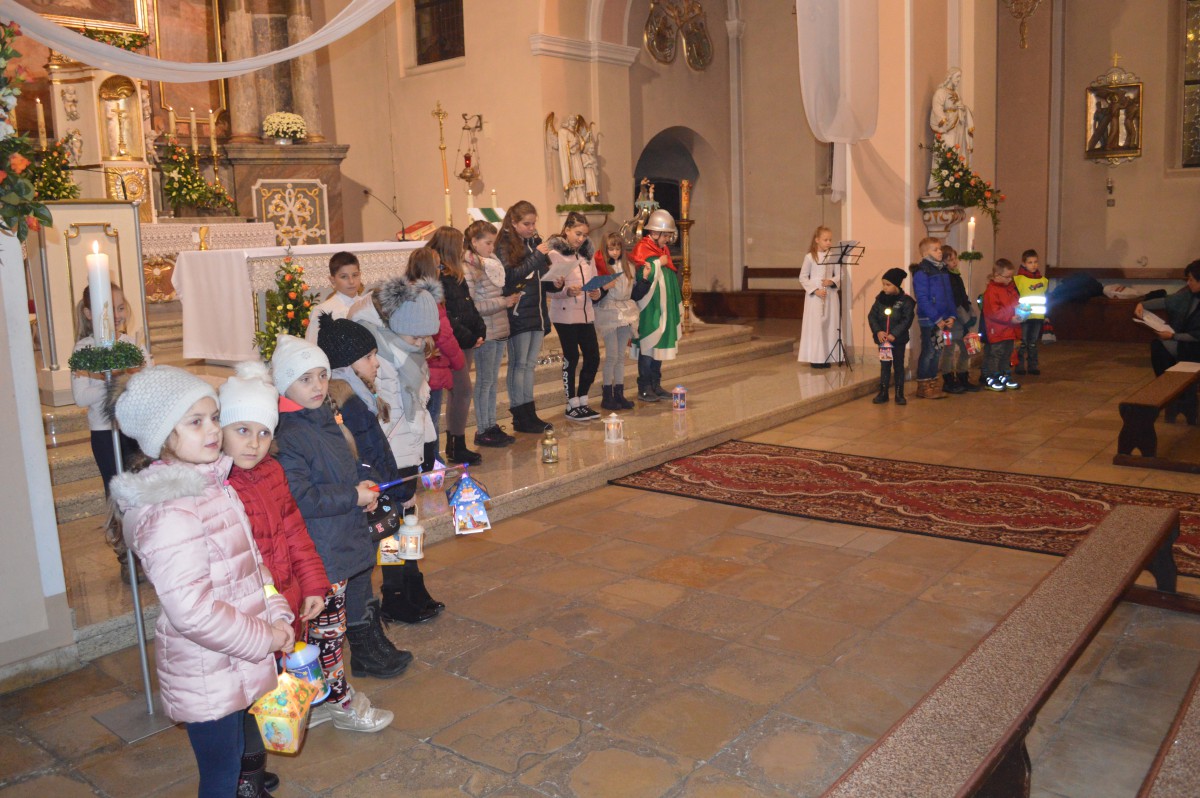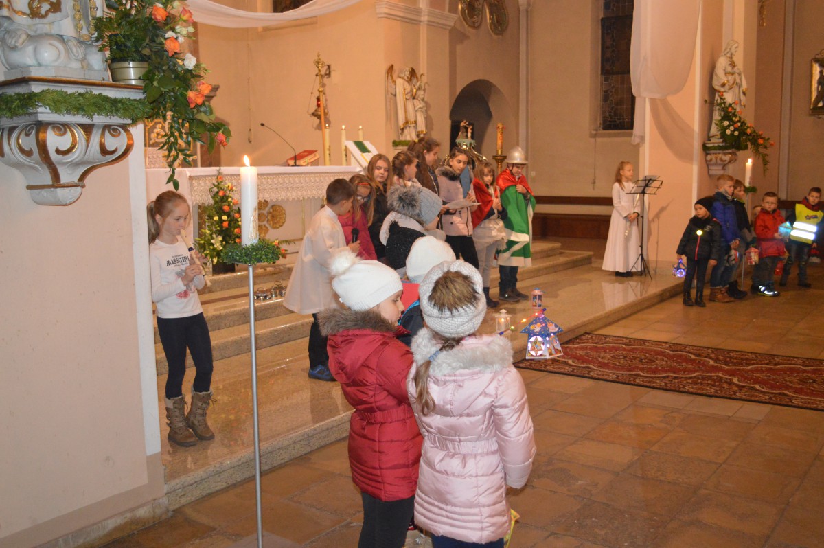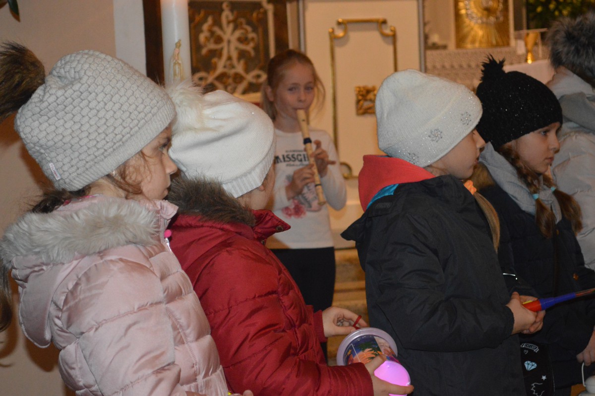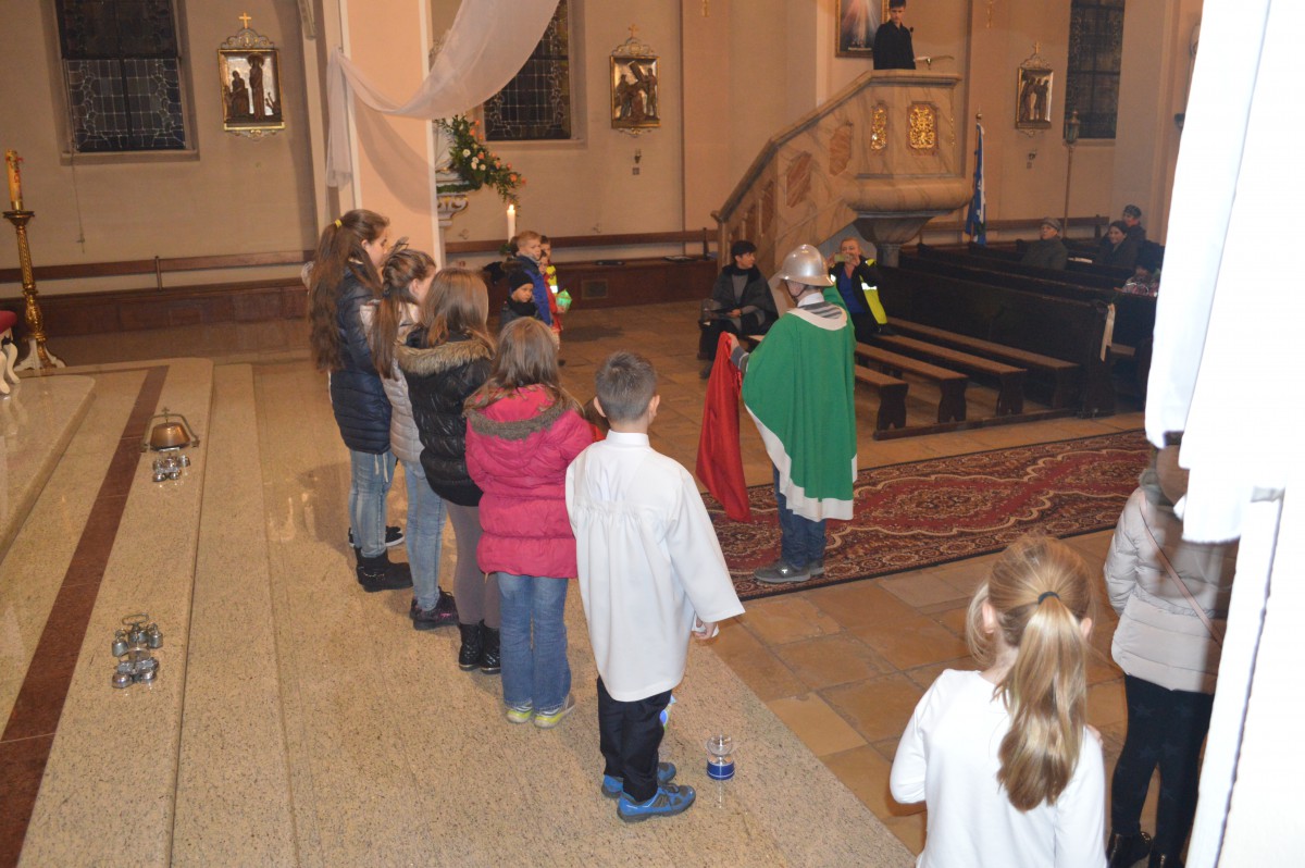 W sobotę 11 listopada uczniowie naszej szkoły wzięli udział w tradycyjnych obchodach św.Marcina. Zanim nastąpił przemarsz z lampionami, tuż po mszy uczniowie zaprezentowali przedstawienie w języku niemieckim i polskim. Pomysłodawczynią, reżyserem oraz autorką recytowanych wierszy była pani Liliana Wencel, która jest nauczycielem języka niemieckiego. Przedstawienie o świętym Marcinie miało nie tylko przypomnieć sylwetkę i życiorys świętego-wraz ze słynną sceną  dzielenia się płaszczem z żebrakiem, ale przede wszystkim skłonić widzów do chwili refleksji nad własnym życiem i zastanowieniem się nad zmianą swej postawy wobec innych-na wzór świętego Marcina.