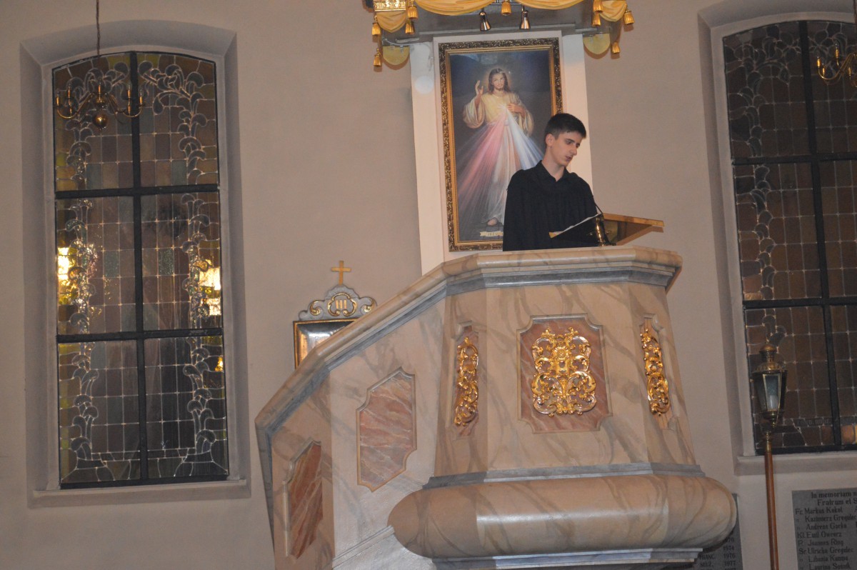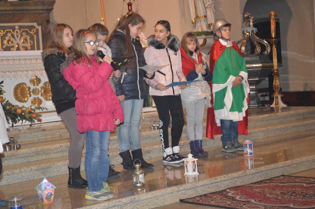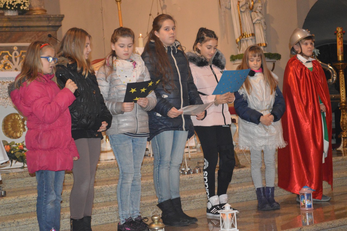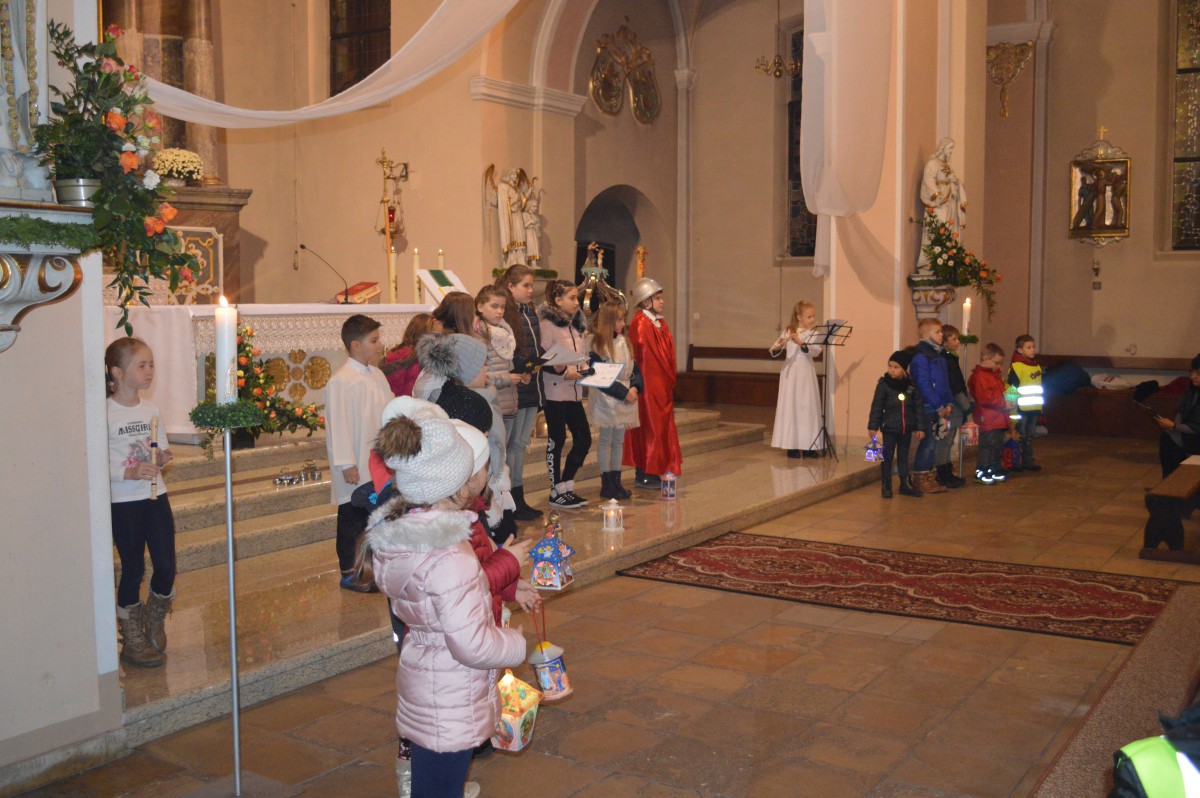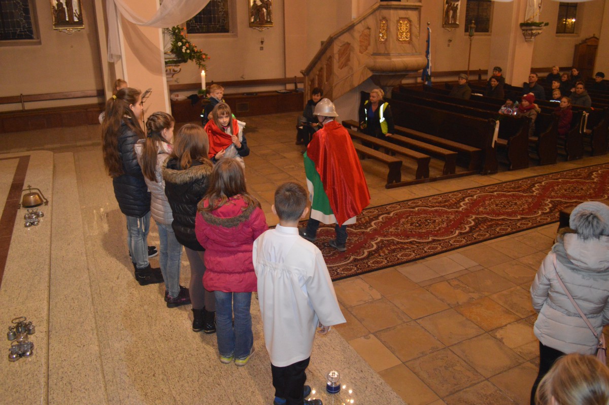 W sobotę 11 listopada uczniowie naszej szkoły wzięli udział w tradycyjnych obchodach św.Marcina. Zanim nastąpił przemarsz z lampionami, tuż po mszy uczniowie zaprezentowali przedstawienie w języku niemieckim i polskim. Pomysłodawczynią, reżyserem oraz autorką recytowanych wierszy była pani Liliana Wencel, która jest nauczycielem języka niemieckiego. Przedstawienie o świętym Marcinie miało nie tylko przypomnieć sylwetkę i życiorys świętego-wraz ze słynną sceną  dzielenia się płaszczem z żebrakiem, ale przede wszystkim skłonić widzów do chwili refleksji nad własnym życiem i zastanowieniem się nad zmianą swej postawy wobec innych-na wzór świętego Marcina.