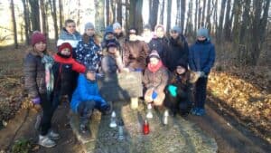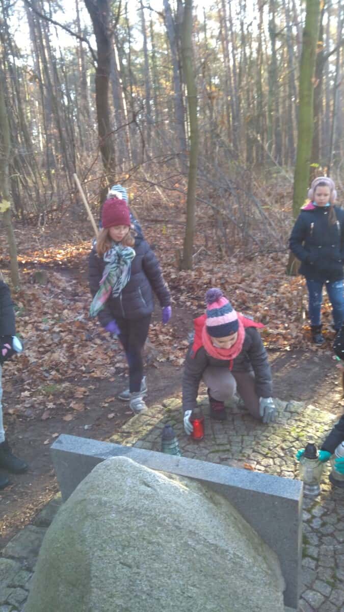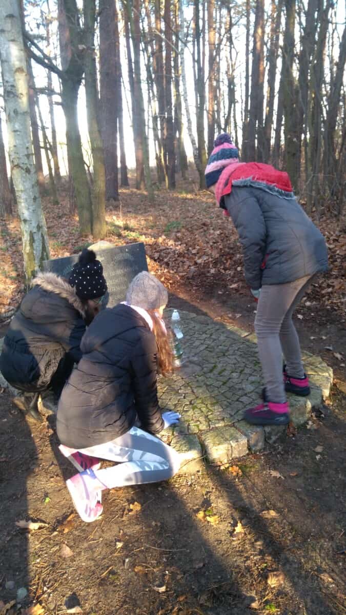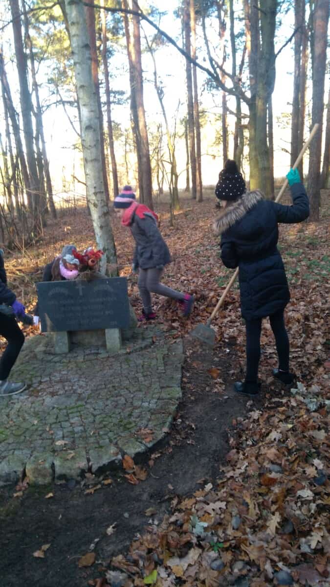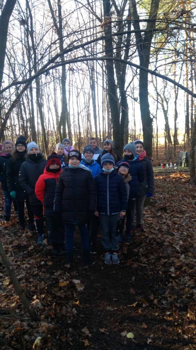 Uczniowie klasy V mieli okazję bezpośrednio zetknąć się ze śladami historii na naszym terenie. W ramach lekcji Historii i kultury mniejszości narodowej niemieckiej, wybrali się do lasku za Chróścicami, gdzie znajduje się grób nieznanych żołnierzy niemieckich, którzy polegli w tym miejscu w czasie II Wojny Światowej. Uczniowie bliżej poznali historię wojny i tragiczne losy wielu żołnierzy. Część lekcji przeznaczono na odczytanie i przetłumaczenie napisu na obelisku. Oprócz poznania historii swej małej Ojczyzny, uczniowie mieli również możliwość wykazania się umiejętnościami organizacyjno-porządkowymi. Bardzo ochoczo i przy zachowaniu powagi miejsca, posprzątali grób i teren wokół niego. Takie miejsca historii są naszą wspólną własnością, dlatego warto je pielęgnować i