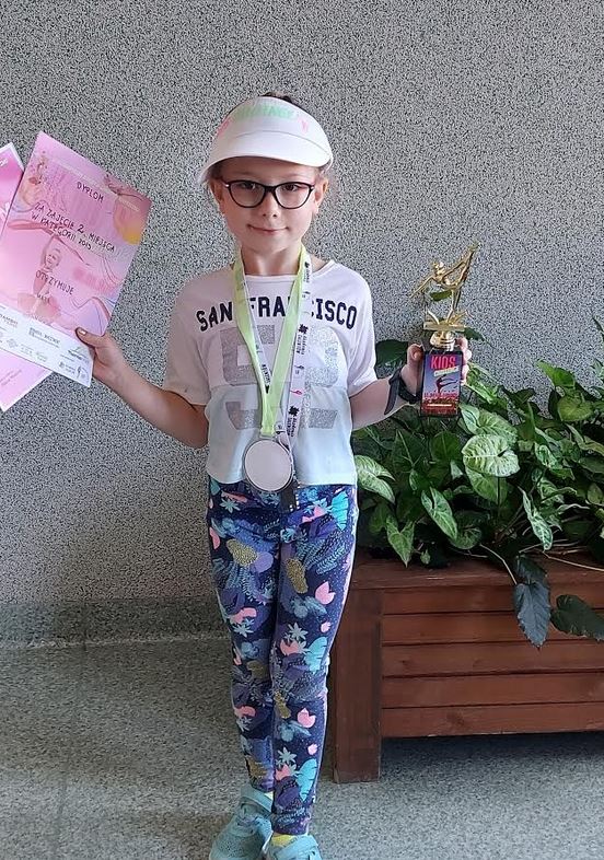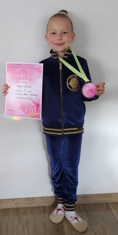 Maja Długosz uczennica kl. 1 naszej szkoły mimo tak młodego wieku może się pochwalić osiągnięciami z gimnastyki artystycznej, którą zaczęła ćwiczyć niespełna trzy lata temu. Treningi  rozpoczęła we wrześniu 2019, po kilku miesiącach treningu przeniesiona została do grupy zaawansowanej. Początkowo treningi odbywały się 2 razy w tygodniu po godzinie. W grupie turniejowej  odbywają się 4 razy w tygodniu po 2 godziny. To trudny i wymagający sport. Czasem przygotowania do zawodów wymagają dużo więcej czasu. Maja trenuje w klubie RG ART  Opole, a trenerem jest   p. Olha Kulyzhska.