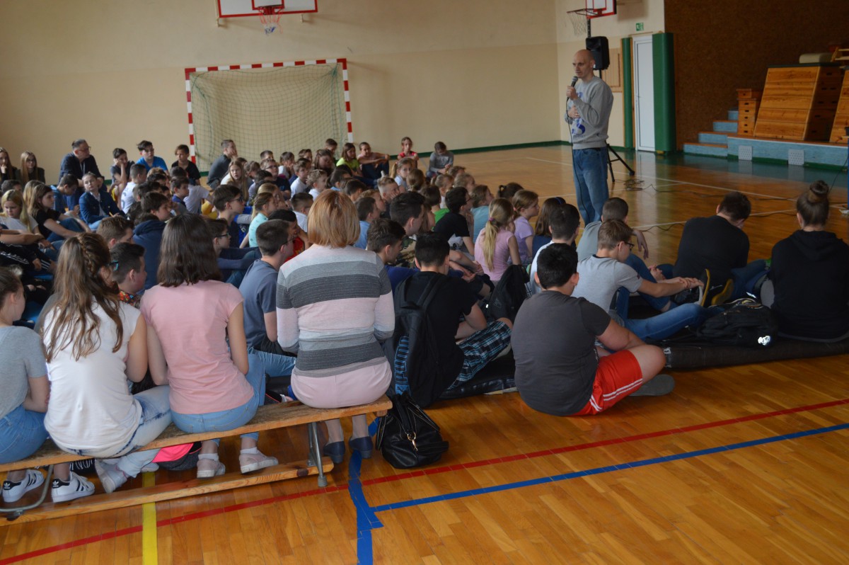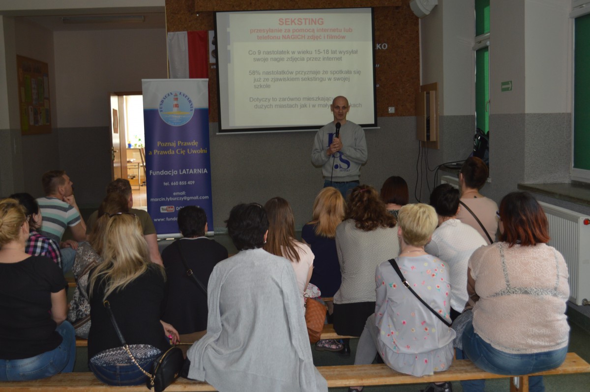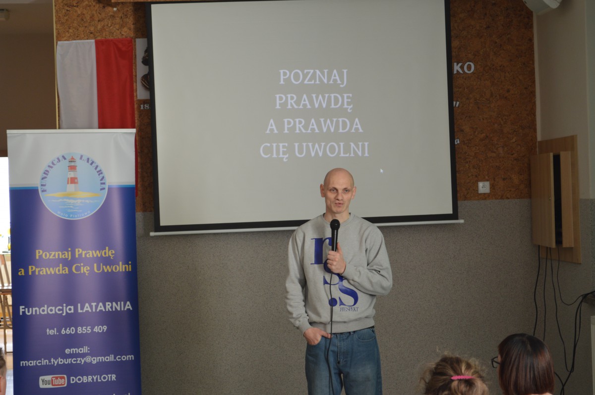 Piciem alkoholu, braniem narkotyków oraz innych używek odbierasz sobie zdrowie, wolność a nawet życie.Z takim przesłaniem zwrócił się do uczniów naszej szkoły Marcin Tyburczy z fundacji “Latarnia”, który 12 kwietnia odwiedził naszą szkołę. Opierając się na wielu historiach oraz własnym doświadczeniu ostrzegał młodzież przed lekkomyślnym niszczeniem własnego życia. Popołudniem pan Marcin rozmawiał z rodzicami uczulając ich, aby cały czas byli świadomi zagrożeń jakie czają się w dzisiejszym świecie, narkotyki, alkohol,dopalacze, oraz aby nigdy nie rezygnowali ze swojej rodzicielskiej czujności. Podkreślał, że w dobie internetu bezpieczeństwo dzieci i młodzieży też bywa zagrożeniem, więc rodzicielskie wsparcie oraz świadomość ma w tym względzie ogromne znaczenie.