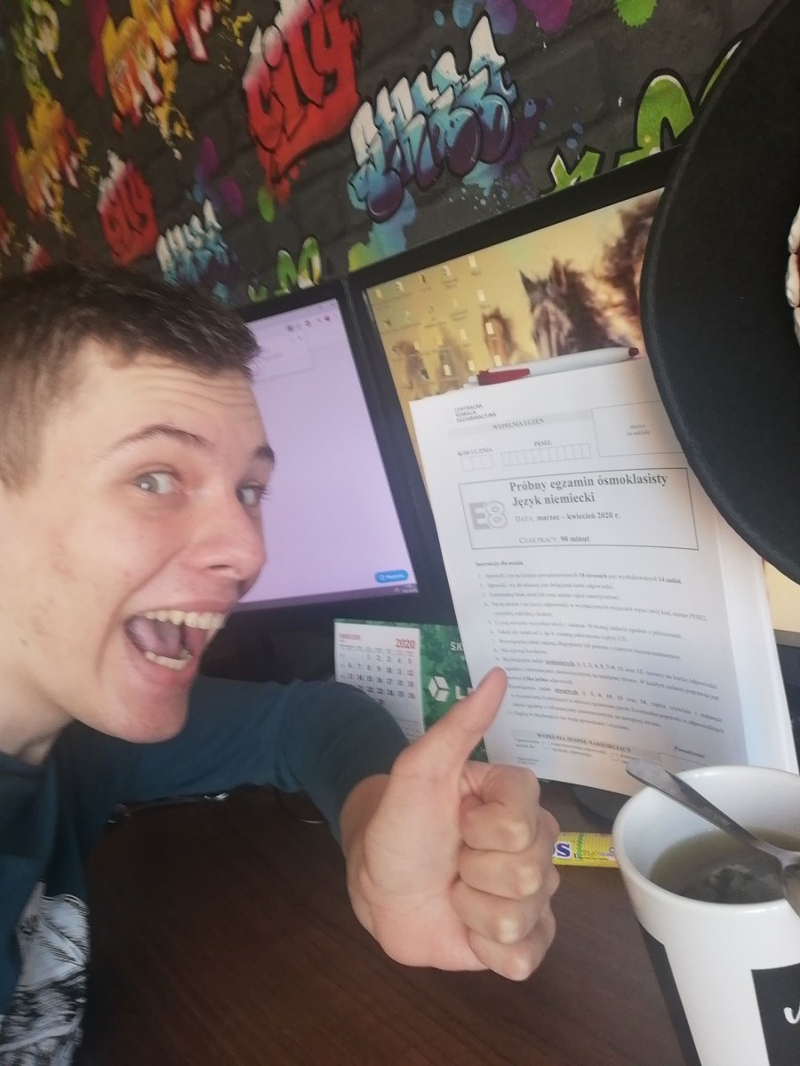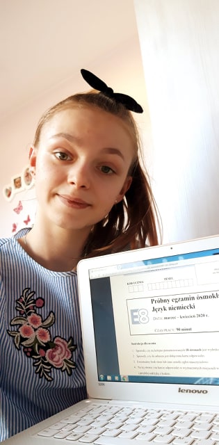 Od dnia 30.03-01.04.2020r. uczniowie klasy ósmej zmagali się z zadaniami z języka polskiego, matematyki, a także z języka obcego nowożytnego. W tym roku jednak egzamin przeprowadzony został w nieco innych warunkach niż dotychczas. Uczniowie nie zasiadali do szkolnych ławek, tylko pobierali arkusze i pisali egzamin w domu, a następnie przesyłali odpowiedzi do poszczególnych nauczycieli. Takiej formy egzaminu jeszcze nie było. Trzymamy kciuki za wyniki!!!