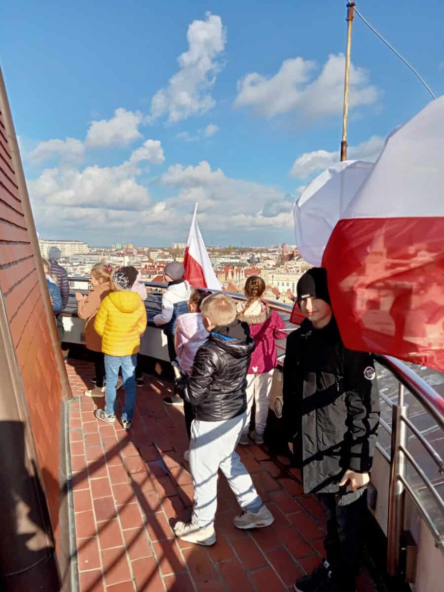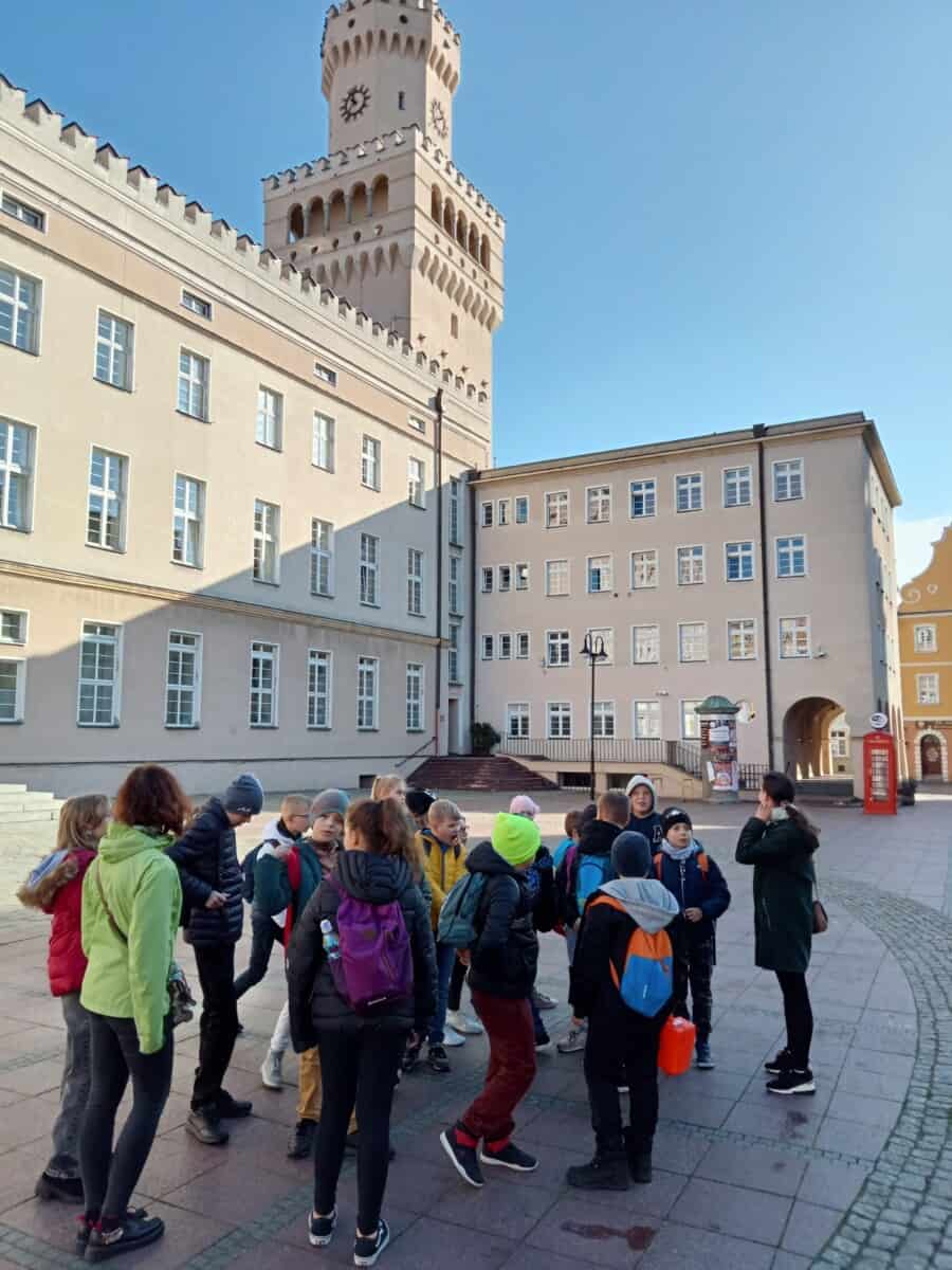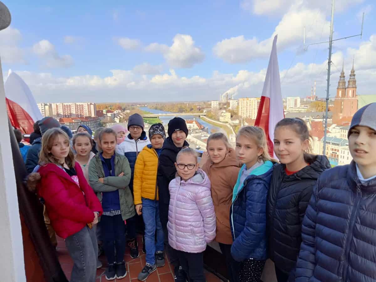 Uczniowie klasy III i klasy V rozpoczęli realizację Projektu „Mały Opolanin”. W miniony czwartek grupa 40 uczniów z w/w klas realizowała warsztaty aktywności twórczej oraz warsztaty teatralne w Młodzieżowym Domu Kultury w Opolu. Uczniowie poznawali również historię powstania miasta, symbolikę Opola, zwiedzali Rynek i Ratusz, kamienice, pomnik Kazimierza, Katedrę, mury obronne, wyspę Pasiekę, tereny nadodrzańskie oraz kanał Młynówka. Największą atrakcją było wejście na Wieżę Piastowską i podziwianie panoramy Opola oraz okolic z góry.