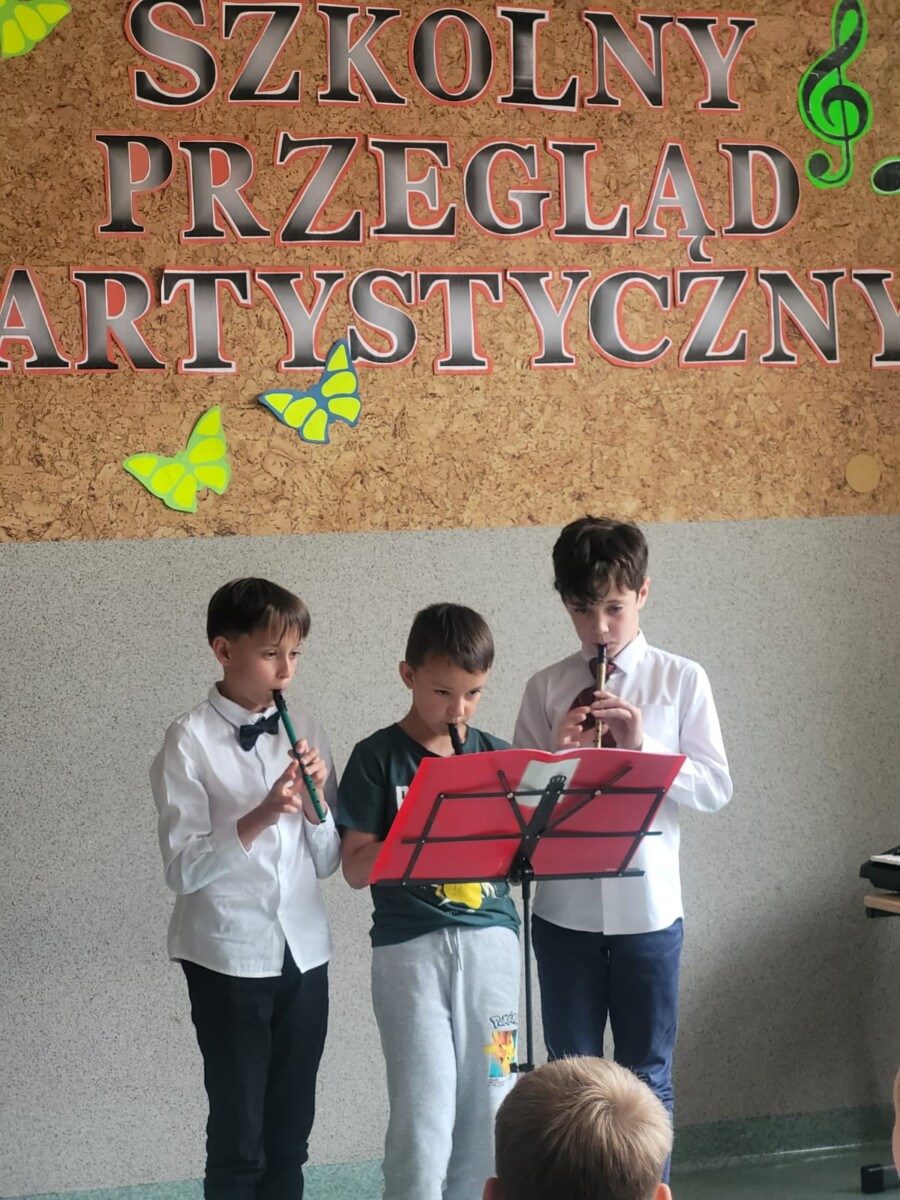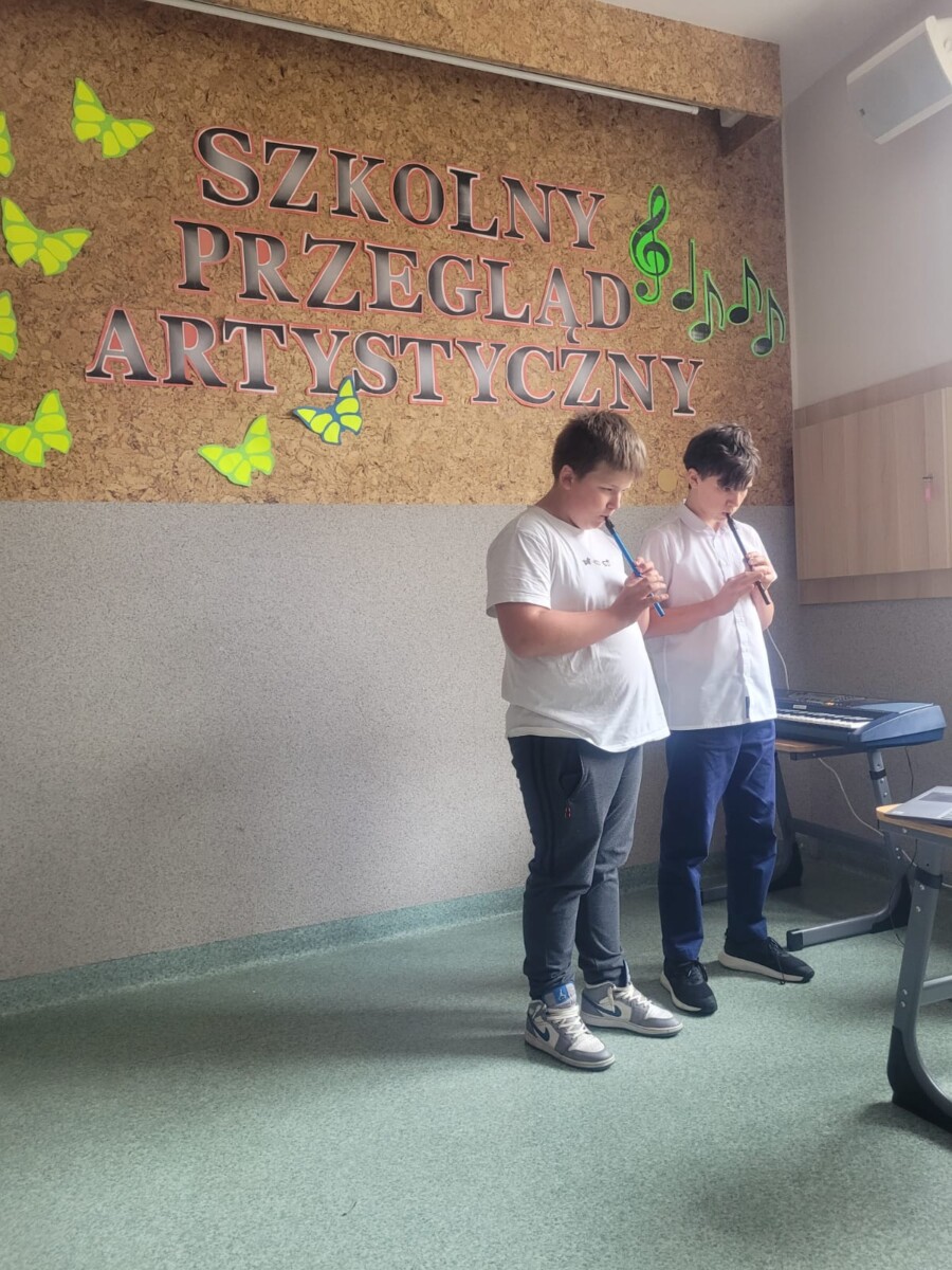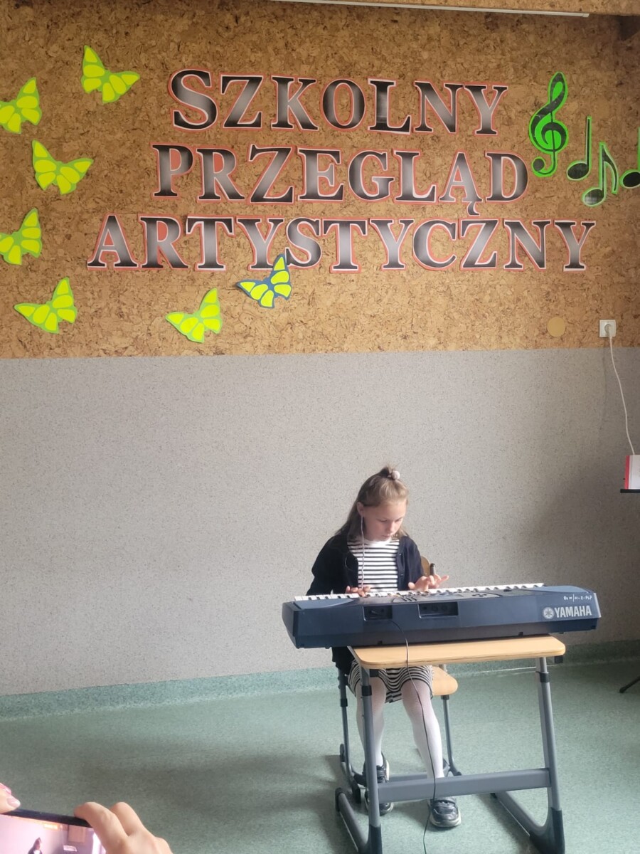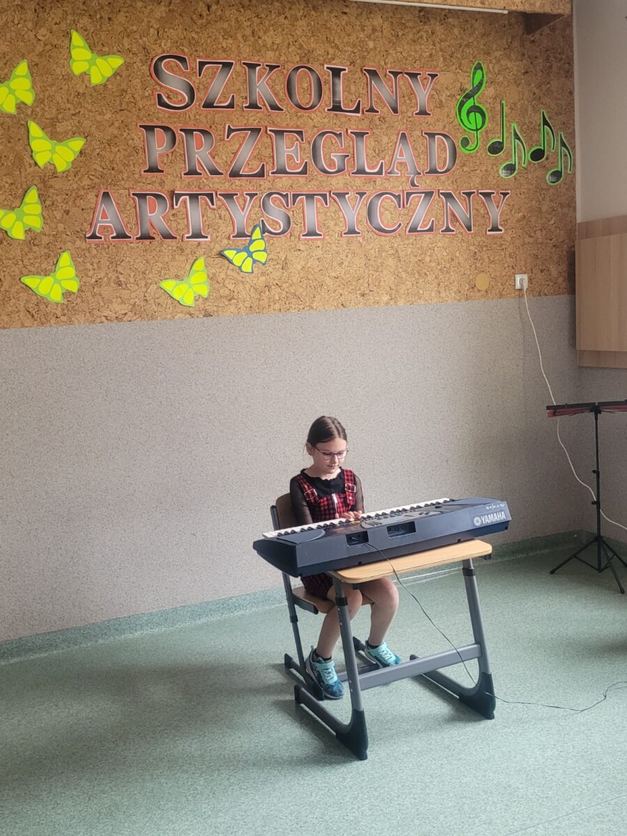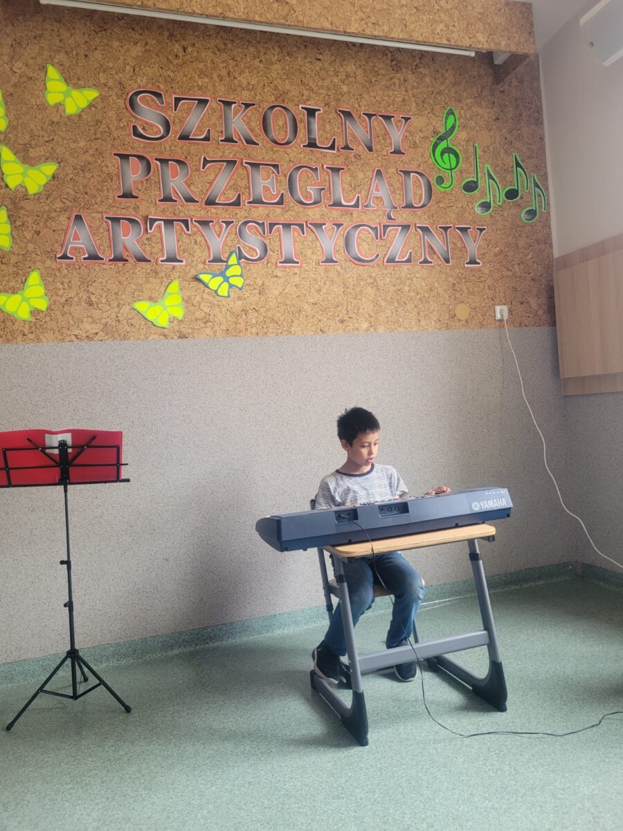na instrumentach: na keyboardzie, flażoletach i gitarze. Niektórzy z nich uczą się gry samodzielnie, oglądając filmiki w Internecie. Takim dzieciom należy się szczególne uznanie. Występy uczniów były bardzo ciekawe i zostały nagrodzone gromkimi brawami. Wykonawcy otrzymali dyplomy i medale. Warto w dzieciach rozbudzać zamiłowania muzyczne, bo muzyka towarzyszy im przez całe życie i jest najlepszym lekarstwem na stres.