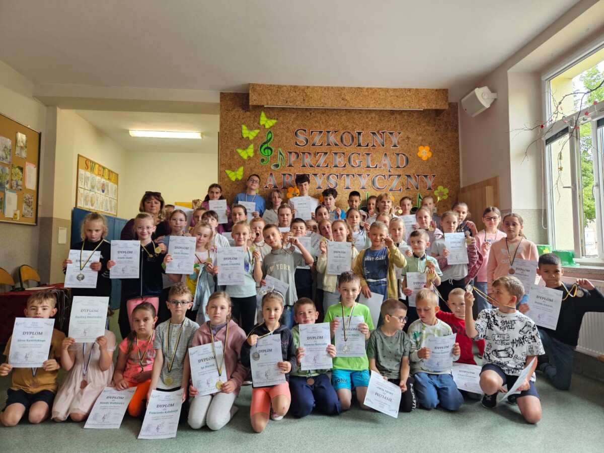 Od 24 lat w naszej szkole odbywa się Szkolny Przegląd Artystyczny. Konkurs, który umożliwia dzieciom zaprezentowanie swoich umiejętności wokalnych, tanecznych, instrumentalnych, recytatorskich, a także podzielenie się z rówieśnikami swoimi pasjami i zainteresowaniami. Od samego początku, czyli roku 2000 przegląd cieszy się wielkim zainteresowaniem. Tylko raz, nie odbył się z powodu pandemii. Przez te lata wystąpiły setki uczniów, rozdano setki medali i dyplomów.