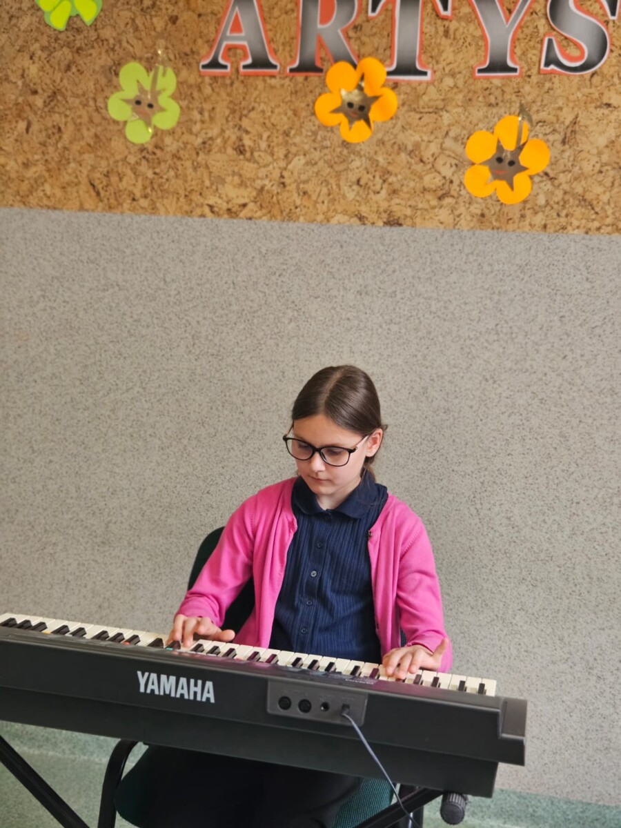 W tym roku wystąpiło 56 uczestników. Największą grupę stanowiły dzieci z klas 1-3. Uczniów oceniało Jury w składzie: Pani Ania Skrzipietz, Karina Wajman, Siostra Eligia, Pani Daria Giewanowicz i Pan Marcin Kondziela. Oceniano: dobór repertuaru i jego interpretację, poprawność wykonania i wrażenia artystyczne. Wśród wykonawców dominowała gra na flażolecie, a w filmikach prezentujących pasje- jazda konna. Przyznano 57 medali, w tym 30 złotych. Gratuluję wszystkim uczestnikom zapału i zaangażowania i zachęcam wszystkich uczniów do odkrywania i rozwijania swoich zdolności, zainteresowań i pasji.