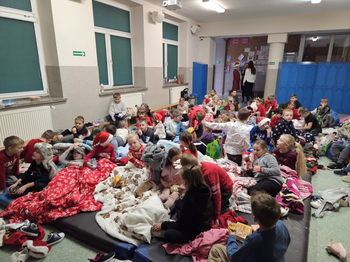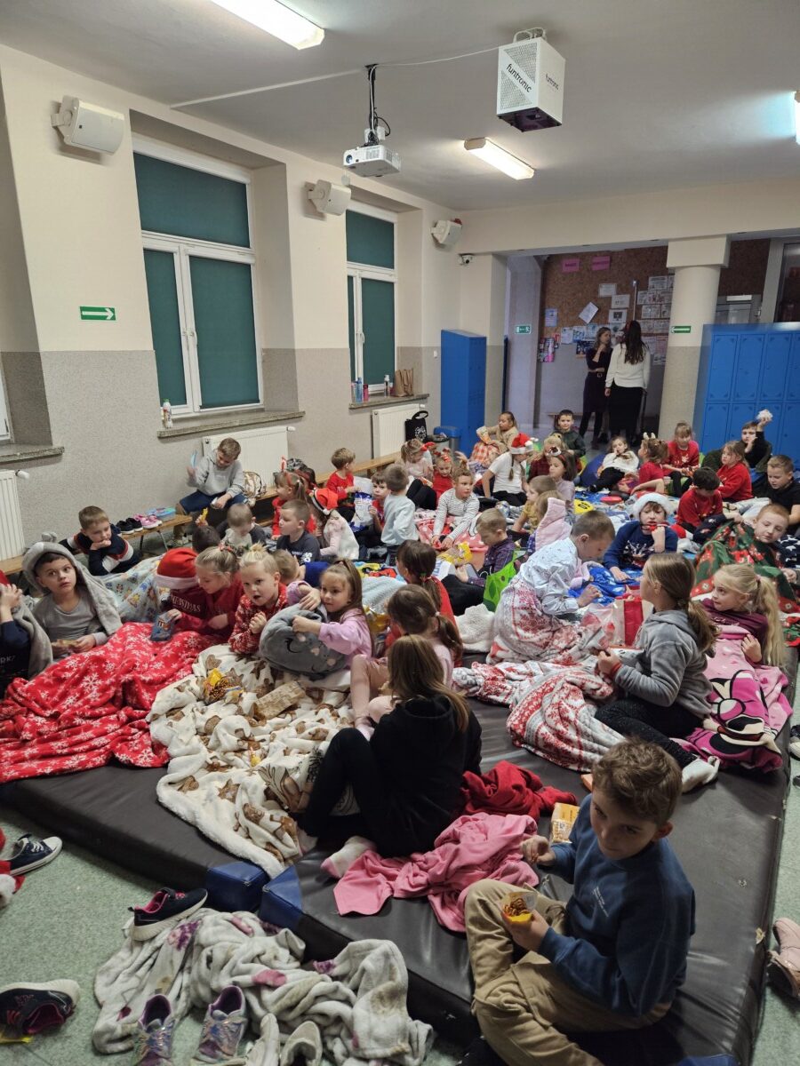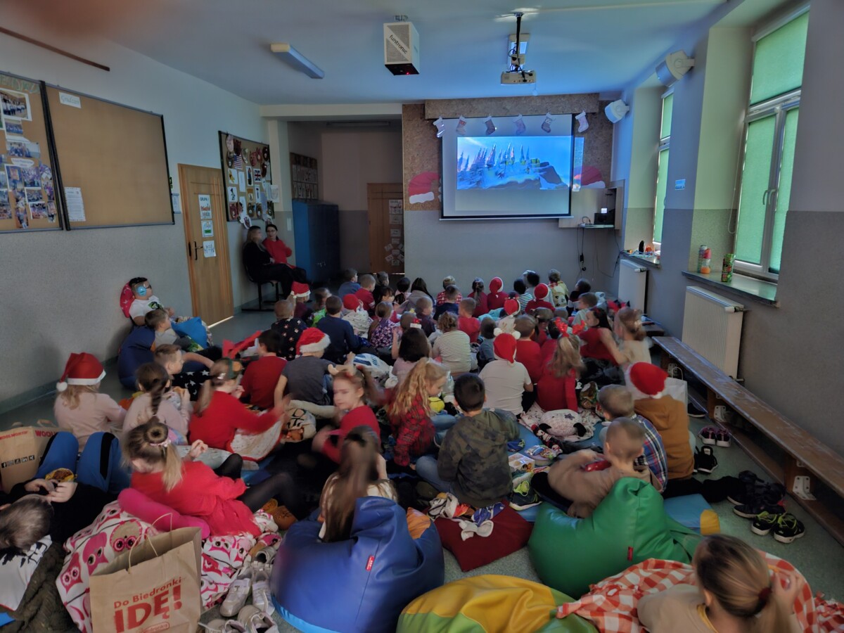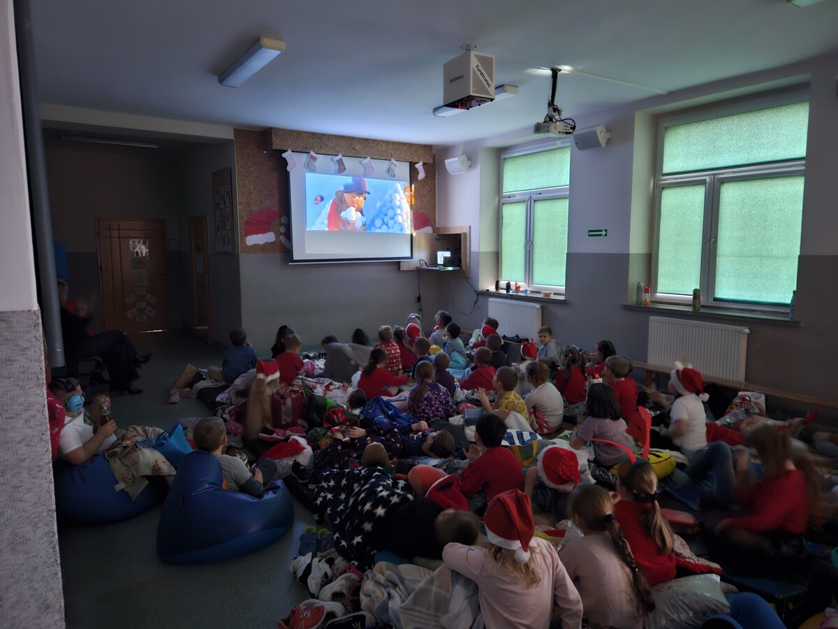 6 grudnia w naszej szkole odbył się Mikołajkowy seans filmowy. Hol na parterze zamienił się w salę kinową. Na podłodze zostały położone materace, na których dzieci rozłożyły kocyki i poduszki. Przygotowały też różne przekąski i napoje. Opuszczone rolety pozwoliły poczuć się jak w kinie. Uczniowie obejrzeli świąteczny film, pod tytułem „Grinch”. W sympatycznej i wesołej atmosferze przebiegł nam Dzień Świętego Mikołaja.