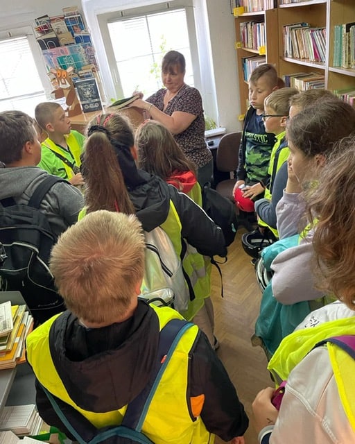 21 czerwca 2022 r. uczniowie klas 3 i 5 naszej szkoły, wzięli udział w ogólnopolskiej akcji „Odjazdowy Bibliotekarz”, której celem jest aktywizacja i integracja czytelników, bibliotekarzy i miłośników książek. Pod wodzą pani Sabiny Lazik-Wodarz- inicjatorki rajdu i opiekunów : Katarzyny Czechowskiej, Marcina Kondzieli i Martyny Nartowskiej, wyruszyliśmy na rowerach do Starych Siołkowic, by zwiedzić publiczną bibliotekę (główna filia w Popielowie). W bibliotece zostaliśmy serdecznie ugoszczeni przez panią bibliotekarkę Marylę Sadlo, która opowiedziała nam o historii biblioteki i przeprowadziła dla nas warsztaty nt. lektury „Afryka Kazika”. Mieliśmy okazję wymienić się informacjami o naszej szkole i bibliotece oraz zaprosić do udziału w naszych licznych przedsięwzięciach promujących czytelnictwo. Po warsztatach udaliśmy się na kąpielisko w Nowych Siołkowicach. Tam był czas na rekreacje na placu zabaw i konsumpcję lodów, gofrów i zapiekanek. Ostatnim etapem podróży był Chróścicki Młyn-podziwianie piękna przyrody i zabytku regionalnego. Uczniowie poznali historię młyna. Serdecznie dziękujemy pani Krowiak za ufundowanie kanapek i napojów dla uczestników rajdu. To była udana wycieczka i niezapomniana lekcja historii regionu.