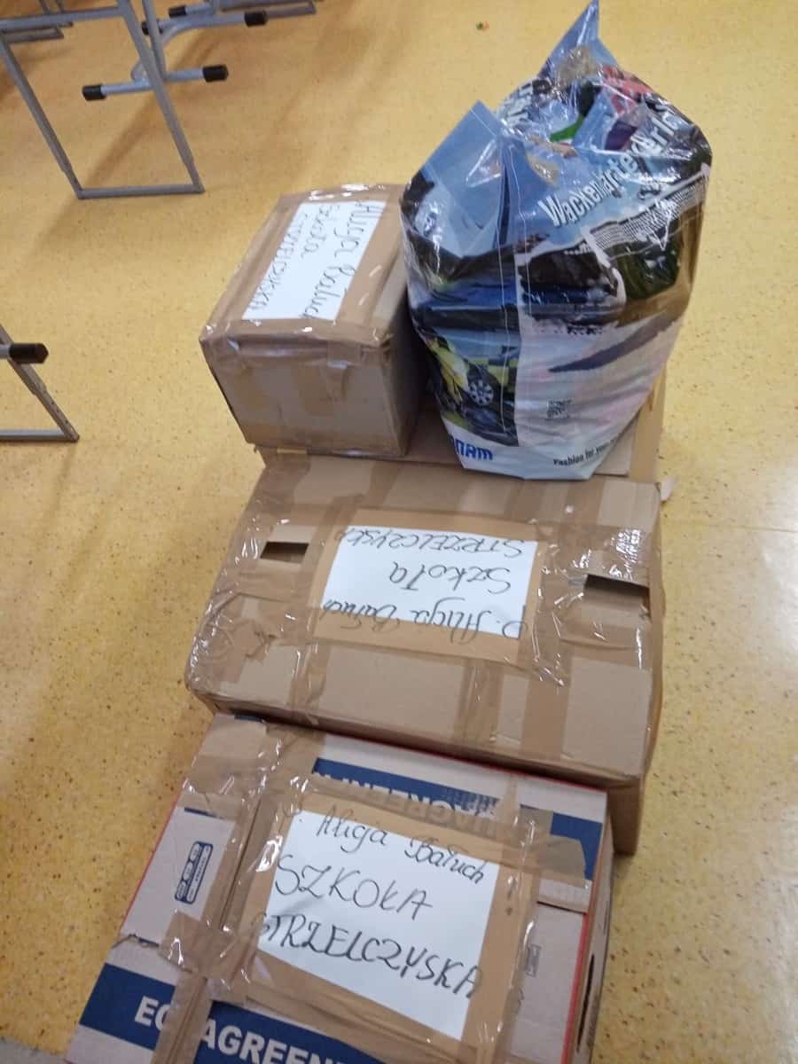 c) Przekazano świąteczne paczki (m.in. artykuły papiernicze, książki, maskotki) dla zaprzyjaźnionej szkoły w Strzelczyskach na Ukrainie;