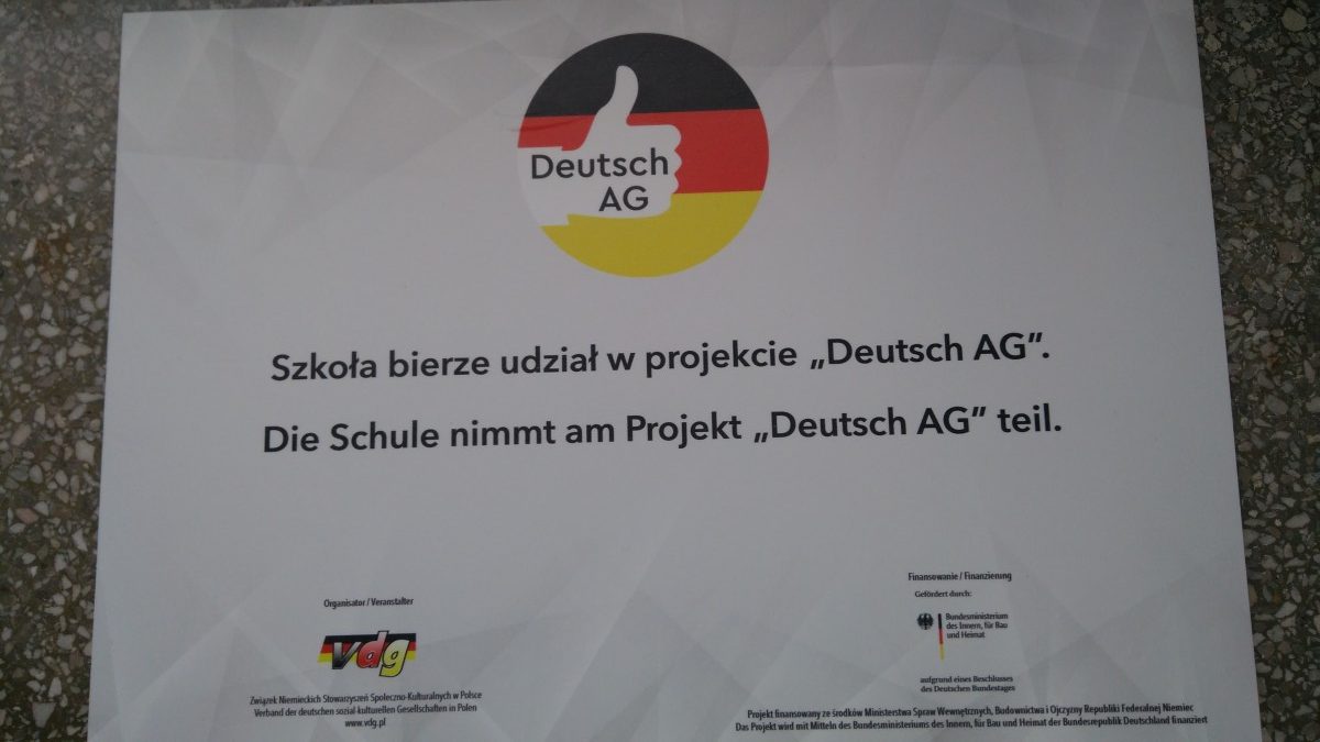 U uczniów naszej szkoły kształcimy kompetencje kluczowe, istotne do podejmowania decyzji związanych z wyborem szkoły, przyszłego miejsca pracy. W dzisiejszym świecie posługiwanie się językami obcymi, w mowie i piśmie jest cenną zaletą. Człowiek przebywający w innym państwie czuje się pewniej i bezpieczniej. Przepisy Prawa Oświatowego pozbawiła uczniów klasy VII I VIII możliwości nauki języka mniejszości narodowej- niemieckiej, w przypadku , gdy drugim nauczanym językiem obcym w szkole, jest język niemiecki. Wychodząc naprzeciw potrzebom uczniów oraz życzeniom rodziców, nasza szkoła przystąpiła do Projektu Edukacyjnego „Deutsch AG”. Projekt ten skierowany jest do uczniów klas VII i VIII szkoły podstawowej, którzy do klasy VI uczyli się języka niemieckiego, jako języka mniejszości narodowej. Podstawą tego Projektu jest program do nauczania języka niemieckiego, jako języka obcego, który został rozszerzony o treści realioznawstwa Niemiec.