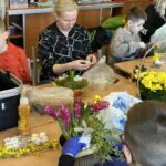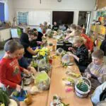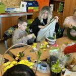 Sala wypełniła się radosną atmosferą, rozmowami i śmiechem. Na stołach pojawiły się kolorowe ozdoby, bazie, pisanki, wstążki oraz naturalne elementy, które inspirowały do tworzenia pięknych kompozycji. Dzieci z ogromnym zaangażowaniem pracowały razem ze swoim rodzicem, rozwijając swoją wyobraźnię i zdolności manualne.