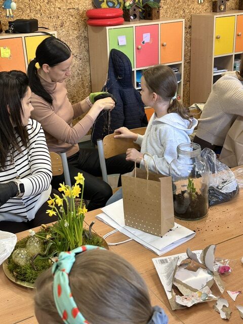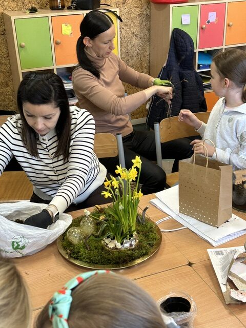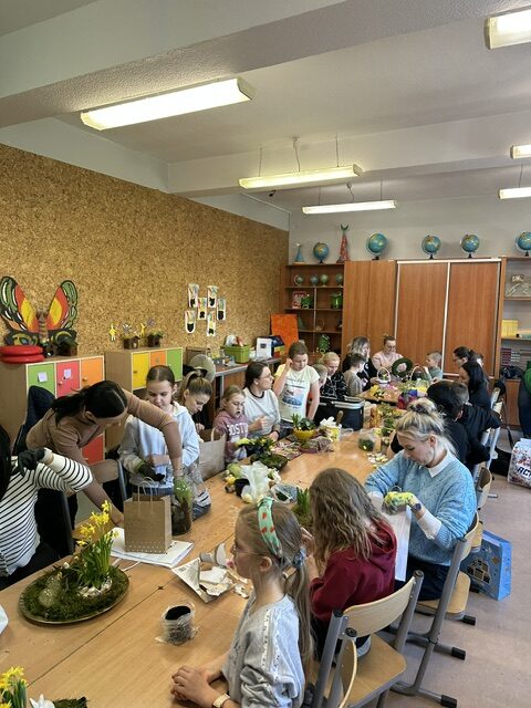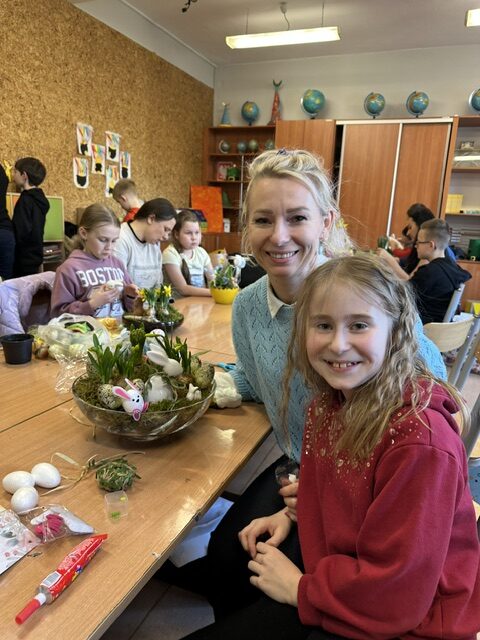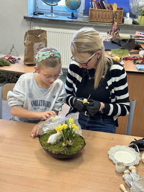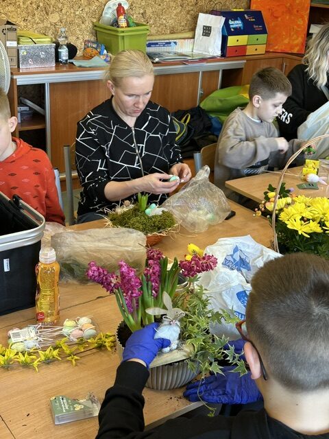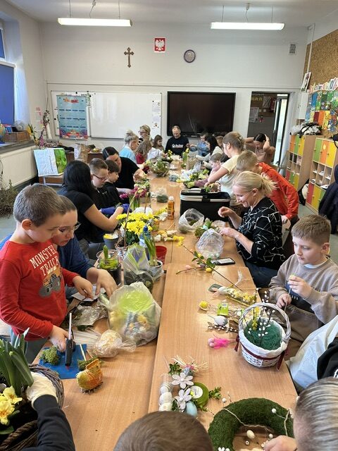 W klasie 3 a odbyło się wyjątkowe spotkanie integracyjne, które połączyło dzieci i ich rodziców we wspólnym, twórczym działaniu. Z okazji zbliżających się Świąt Wielkanocnych odbyły się warsztaty, podczas których każda rodzina miała okazję wykonać własny, niepowtarzalny stroik.