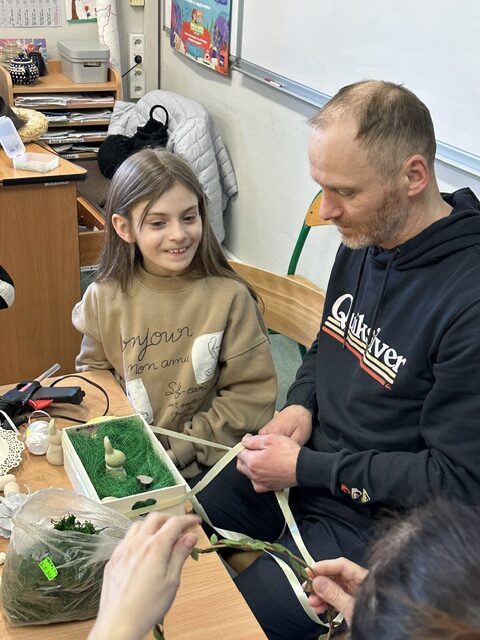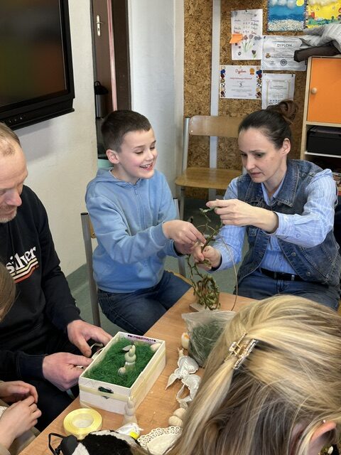 Warsztaty były nie tylko okazją do rozwijania kreatywności, ale przede wszystkim do budowania relacji. Wspólne tworzenie sprzyjało rozmowom, współpracy i wzmacnianiu więzi rodzinnych. Dzieci z dumą prezentowały swoje stroiki, a rodzice mogli na chwilę zatrzymać się w codziennym biegu i spędzić wartościowy czas ze swoimi pociechami.