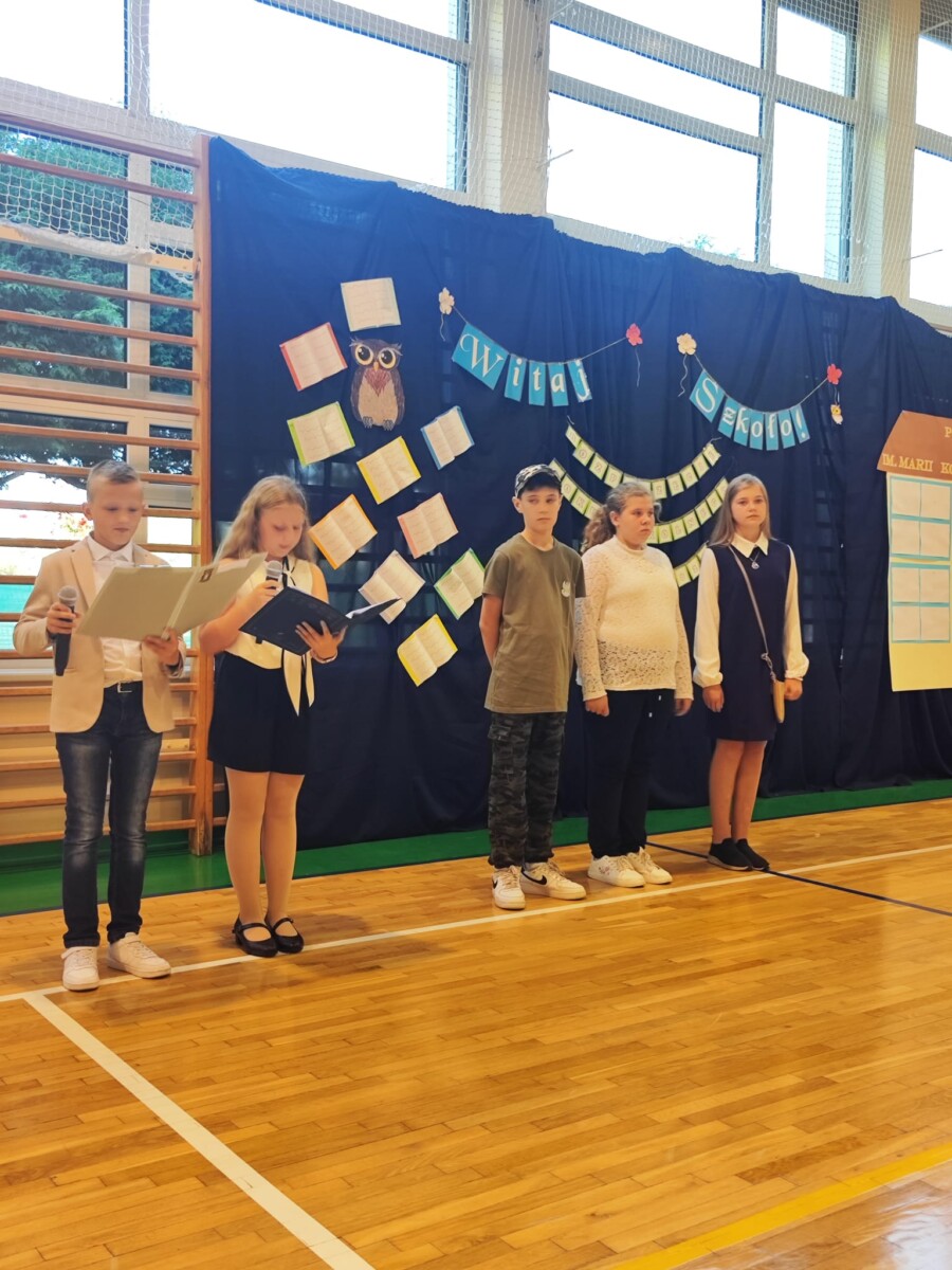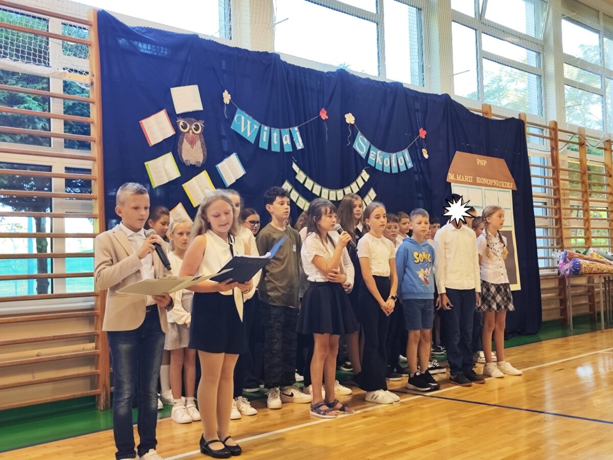 1 września w naszej szkole odbyła się uroczysta inauguracja roku szkolnego 2025/2026. Akademię przygotowały klasy 5a i 5b pod kierunkiem swoich wychowawczyń – Pani Karoliny Pyrek i Pani Aleksandry Krakowiak. Uroczystość rozpoczęła się od piosenki Marka Grechuty „Tyle było dni”, która skłoniła wszystkich do refleksji nad przemijaniem i nowymi szansami, jakie niesie każdy kolejny rok szkolny. W szczególności powitano pierwszoklasistów których obdarowano rogami obfitości oraz 8- klasistów dla których jest to ostatni rok w naszej szkole. W dalszej części uczniowie przypomnieli wydarzenia związane z 1 września 1939 roku – wybuchem II wojny światowej. Ten historyczny akcent nadał uroczystości szczególnego, podniosłego charakteru i uświadomił młodemu pokoleniu, jak ważna jest pamięć o przeszłości. Na zakończenie akademii rozbrzmiała radosna i pełna optymizmu piosenka „Don’t worry, be happy”. Jej pogodny nastrój wywołał uśmiech na twarzach uczniów, nauczycieli oraz rodziców, przypominając, że szkoła to nie tylko nauka i obowiązki, ale także przyjaźnie, wspólne przeżycia i codzienna radość bycia razem.