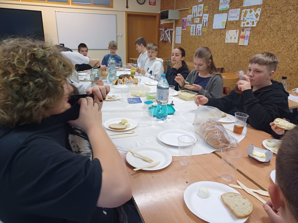 domach oraz jakie zwyczaje są w nich pielęgnowane. Była to cenna lekcja wzajemnego poznawania się i szacunku dla różnych tradycji. Śniadanie wielkanocne w klasie VI było wyjątkowym wydarzeniem, które na długo pozostanie w pamięci uczniów. Pokazało ono, jak ważne są wspólne chwile, współpraca oraz budowanie dobrych relacji w klasie.