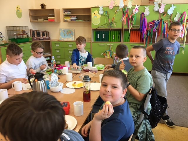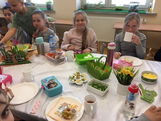 Dnia 13 kwietnia w ostatnim dniu przed przerwą świąteczną w klasie 3 odbyło się uroczyste śniadanie wielkanocne. Uczniowie spędzili miło czas spożywając zdrowe śniadanie oraz słodki poczęstunek przygotowany przez Rodziców. Do klasy zawitał także zajączek, pozostawiając pani wychowawczyni niespodziankę dla swoich wychowanków. Ten dzień miał wyjątkowy charakter.