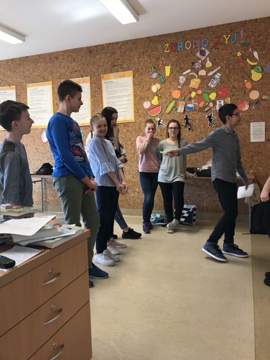 Uczniowie klasy szóstej wraz z wychowawcą.