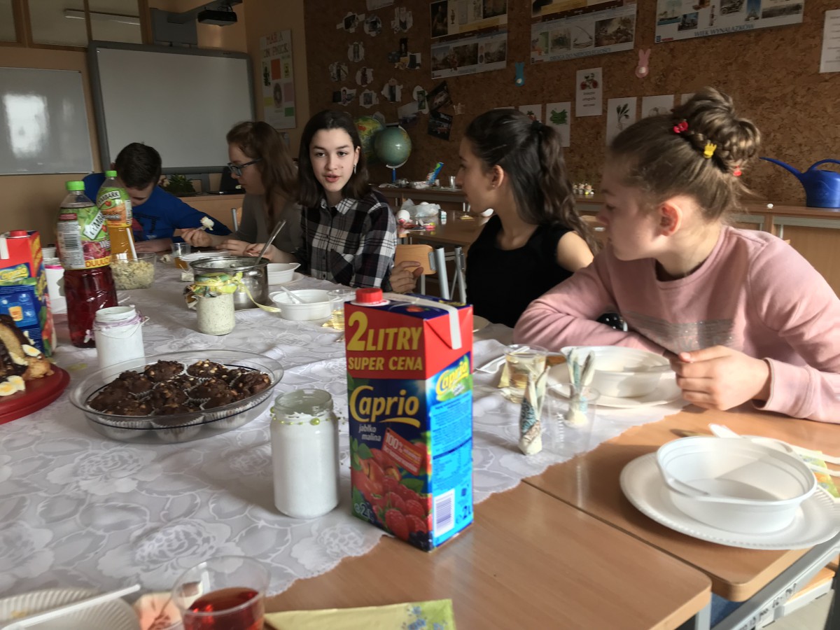 Od kilku lat tradycją naszej klasy jest uroczyste śniadanie wielkanocne. W Wielką Środę spotykamy się razem, by przy wspólnych rozmowach, w miłej atmosferze zdobić jajka, a następnie spożyć tradycyjne potrawy, wśród których nie może zabraknąć: żurku, szynki, jajek przyrządzanych na różne sposoby, chleba, wielkanocnej babki i innych przysmaków.