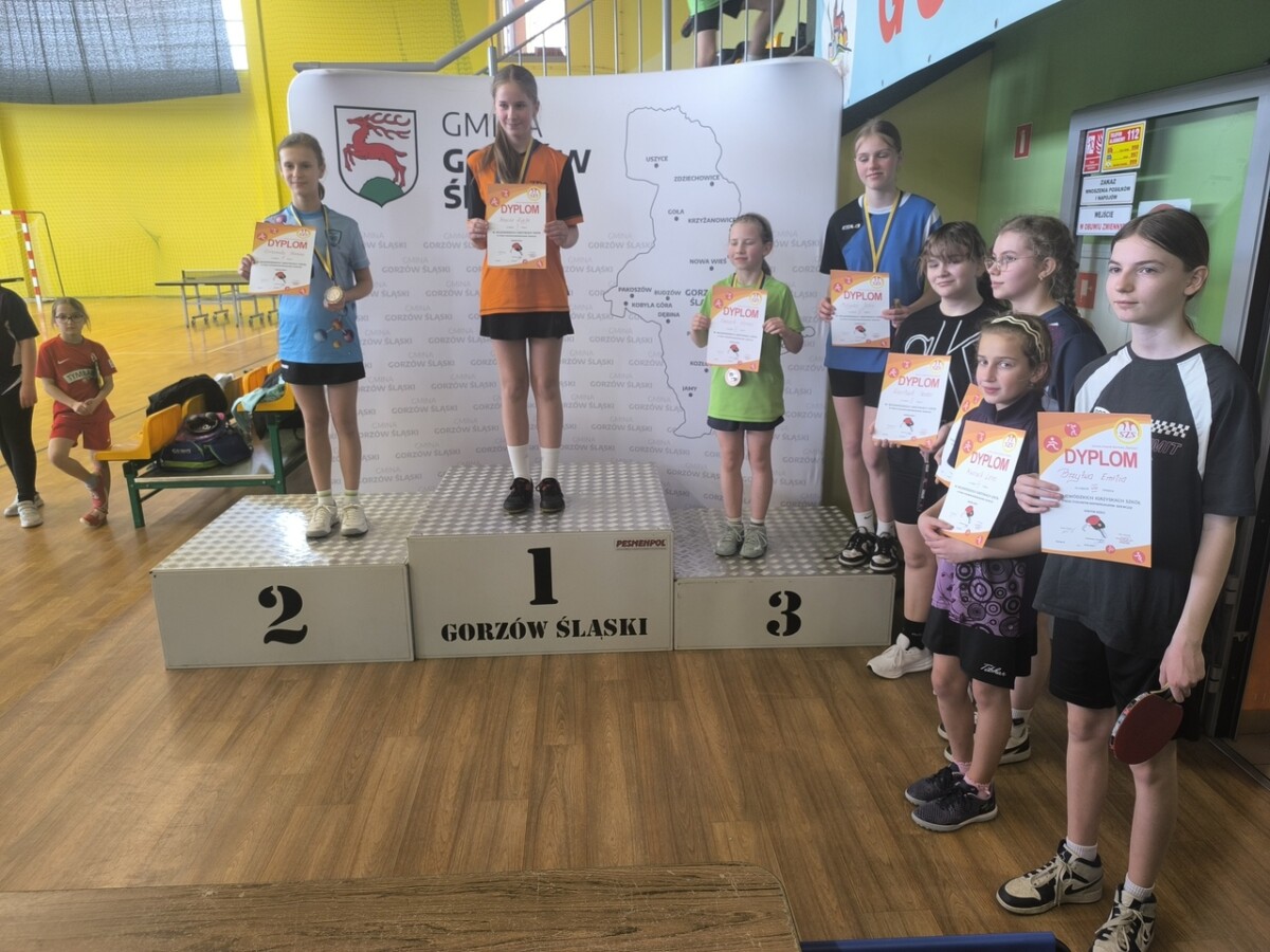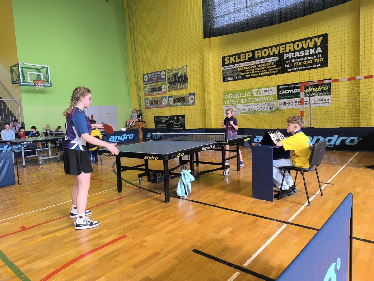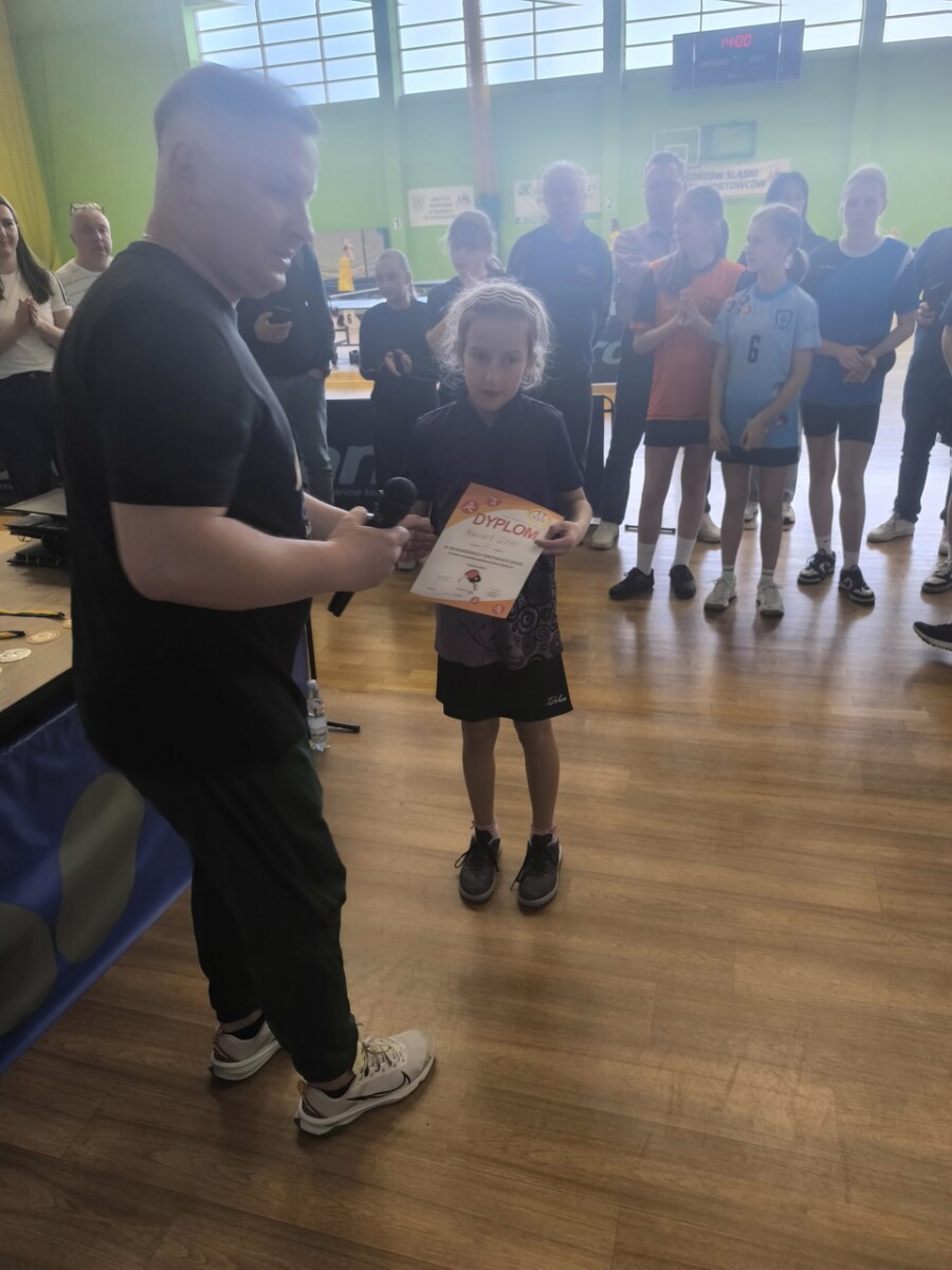 Bardzo dobrze spisała się nasza uczennica Lena Kwosek, która w finale powiatowym zajęła 2 miejsce, tym samym awansując do finału wojewódzkiego. W kolejnym etapie rywalizacji osiągnęła wysokie 7 miejsce w finale wojewódzkim Igrzysk Dzieci w tenisie stołowym. Opiekunem na tych zawodach był pan Marcin Kondziela.