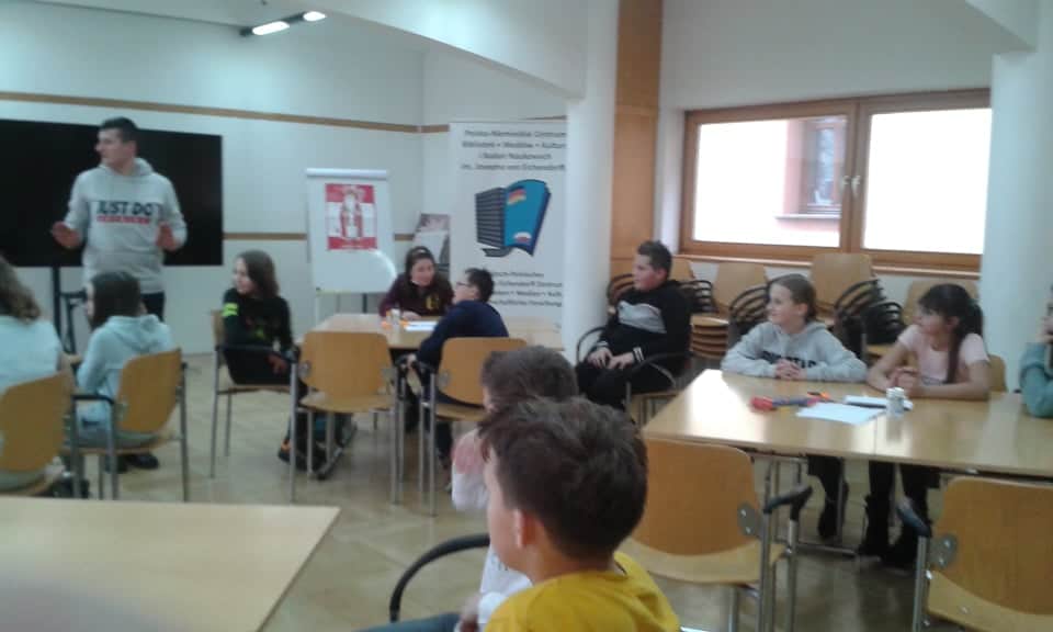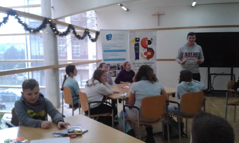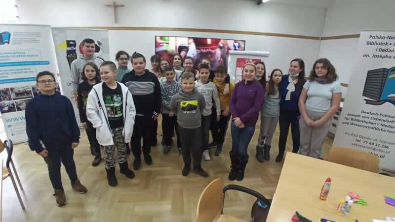 15 metrów. Zwieńczeniem zajęć była zabawa ruchowa. Następnie uczniowie udali się do Centralnej Biblioteki J. von Eichendorffa , gdzie poznawali różnice pomiędzy „ der Nikolaus”, a „Weihnachtsmann” – czyli Mikołajem, a św. Mikołajem. Różnice wynikały nie tylko ze względu na optykę obu postaci, ale również ich historię. Dzięki tym zajęciom dzieci utrwalały już poznane zwroty językowe oraz poszerzały zakres słownictwa. Na końcu uczniowie zaprojektowali strój dla św. Mikołaja i otrzymali drobne upominki. W drodze powrotnej dzieci zwiedziły opolski rynek, gdzie odbywał się Jarmark Bożonarodzeniowy.Uczestnikom bardzo podobał się wyjazd, ponieważ udało się połączyć przyjemne z pożytecznym i chętnie braliby udział w kolejnych sportowo – językowych przedsięwzięciach.