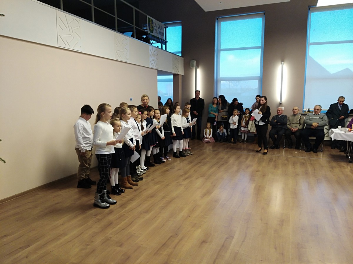 W dniu 09.12.2017 odbyło się w Sali Wiejskiej spotkanie opłatkowe dla osób samotnych. Uczestnicy wysłuchali przemówienia wójta, po którym nastąpiła modlitwa błogosławiąca posiłek. Po skonsumowaniu, nastąpiła część artystyczna. Obok występów przedszkolaków oraz dzieci z ochronki nastąpiła kolej na uczniów klasy IIIa szkoły podstawowej. Oprócz oprawy wokalnej, były także utwory wykonane instrumentalnie przez Natalię Prudlik oraz Paulinę Reimann. Wszystkim występom towarzyszyły gromkie oklaski. Nad uczniami czuwali pani Anna Skrzipietz oraz pan Mateusz Młynek.