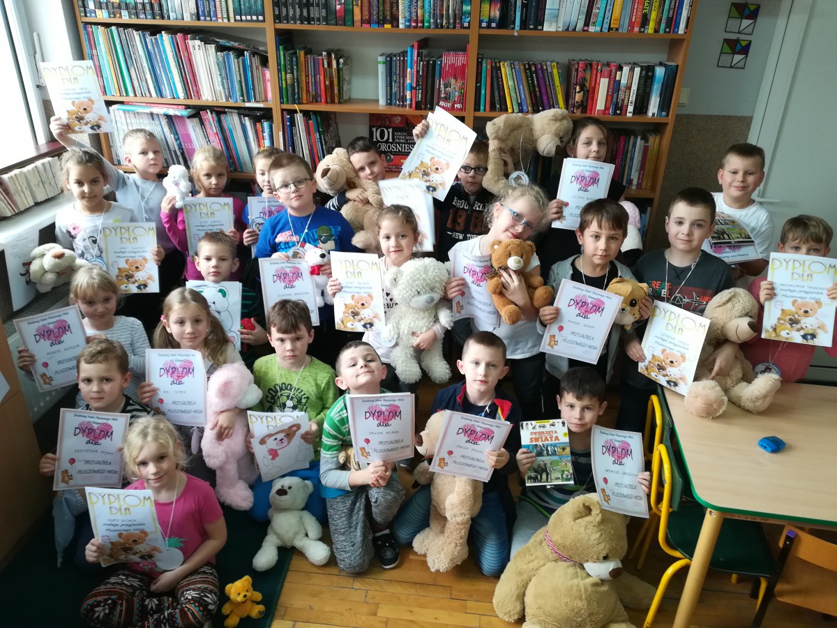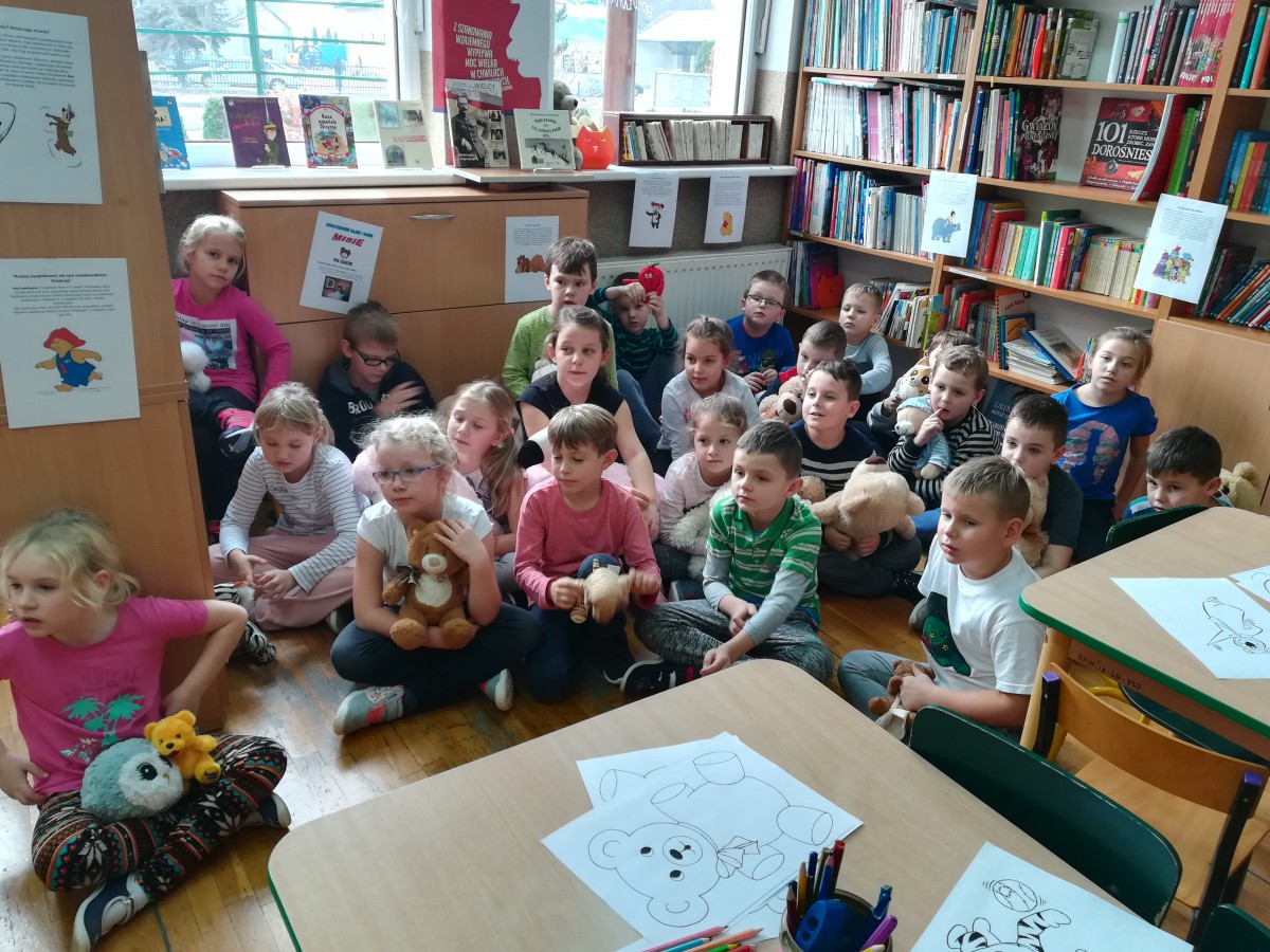 Dnia 25 listopada obchodzony jest Światowy Dzień Pluszowego Misia. To właśnie święto stało się powodem kolejnego bibliotecznego spotkania, tym razem z uczniami klasy pierwszej szkoły podstawowej.