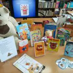 Dzieci zapoznały się z wystawą książek z misiowymi bohaterami. Wśród nich byli: Kubuś Puchatek, Troskliwe Misie, Miś Uszatek, Miś Paddington, Czarny Nosek, Gumisie i inni.